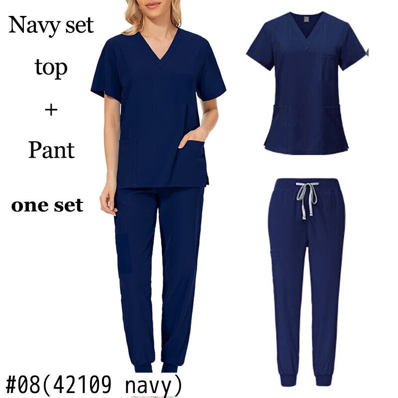 送料無料 男女作業服、ロゴ、ネームフロント、スクラブセット、スパ、サロン、手術ユニフォーム、介護服、医療服 AE0888778778233093221