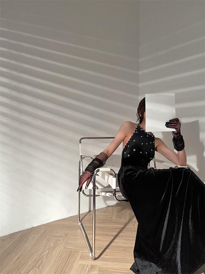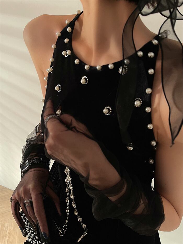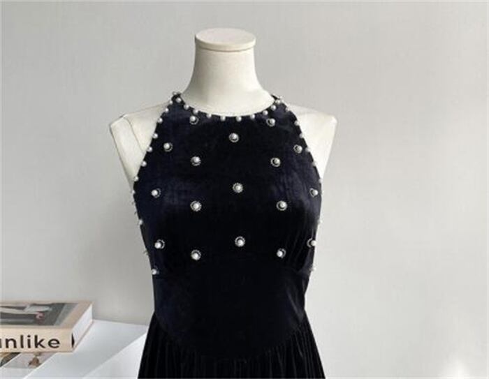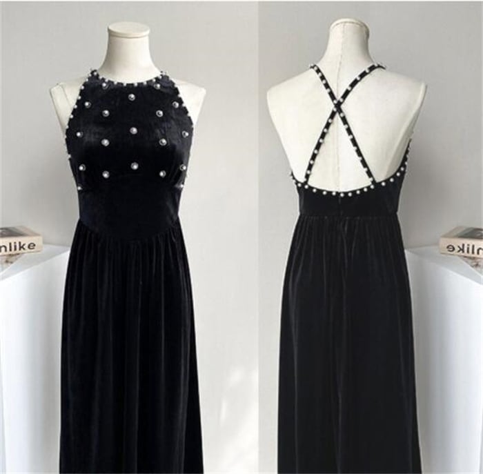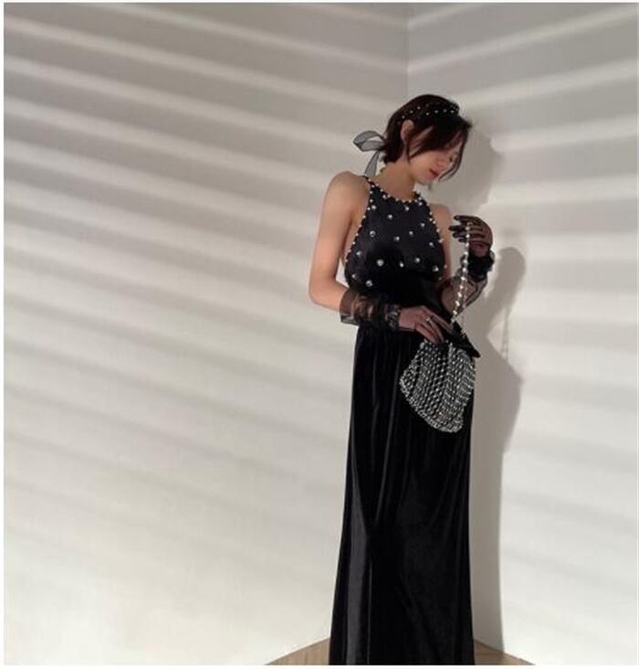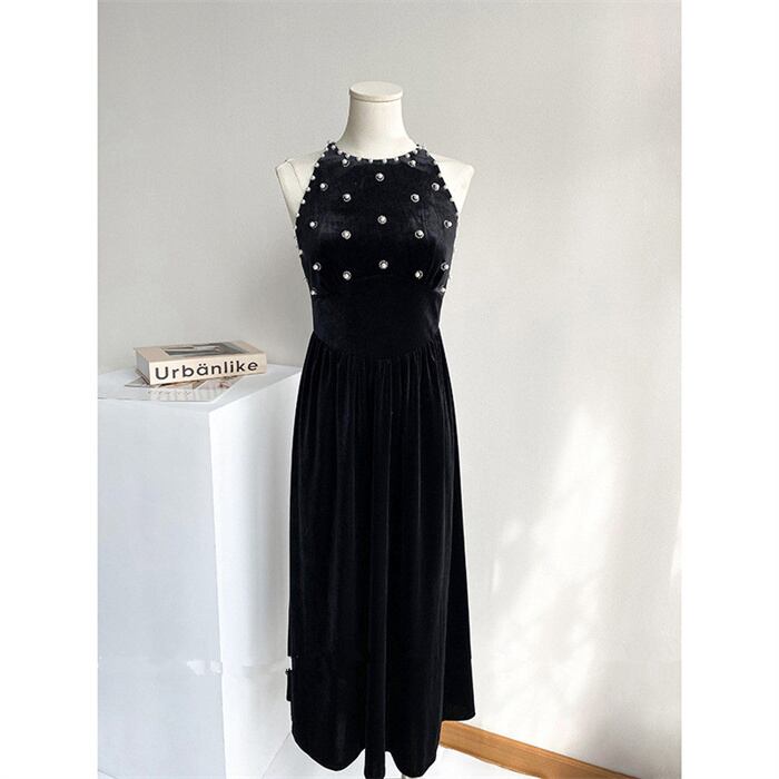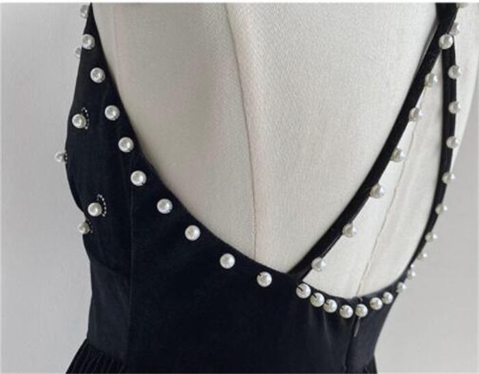 新作限定SALE! ニュースタイル/ベルベット/パール/バックレス/ディナー/ロングドレス/スモールドレス