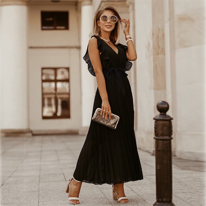 気質/ビーチロングスカート/スリムフィット/セクシー/シフォン/プリーツスカート/無地/ワンピース
