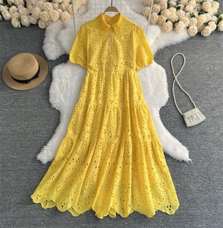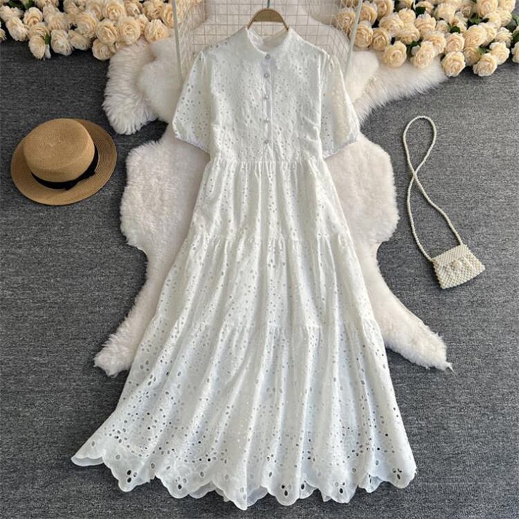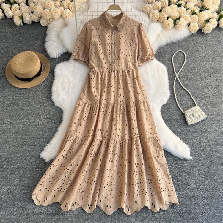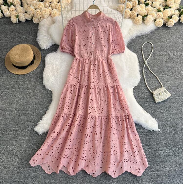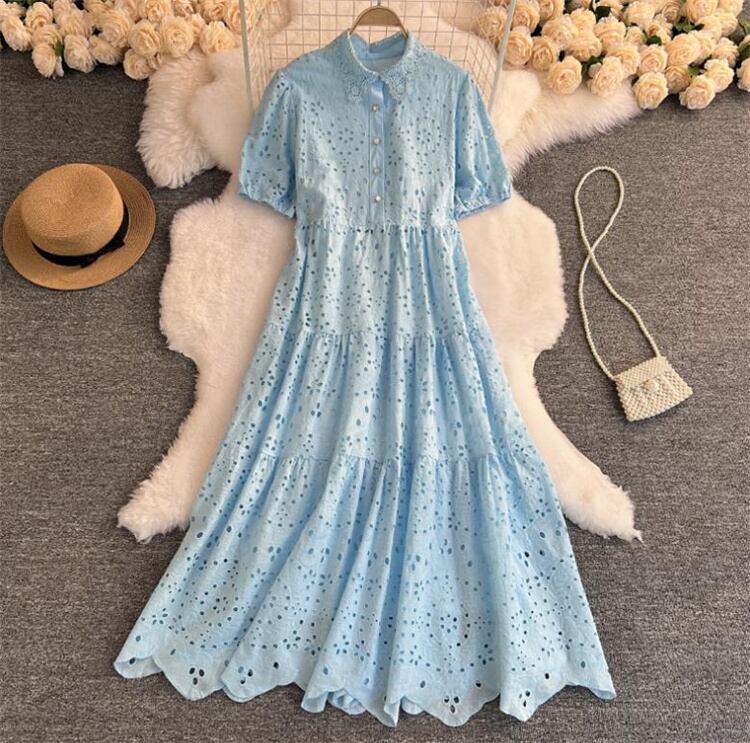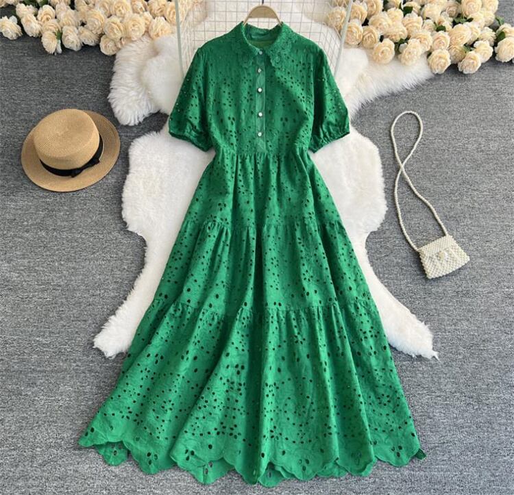 パフスリーブ ボヘミアンスタイル 中空 ロングスカート ししゅう ホリデードレス 大人気