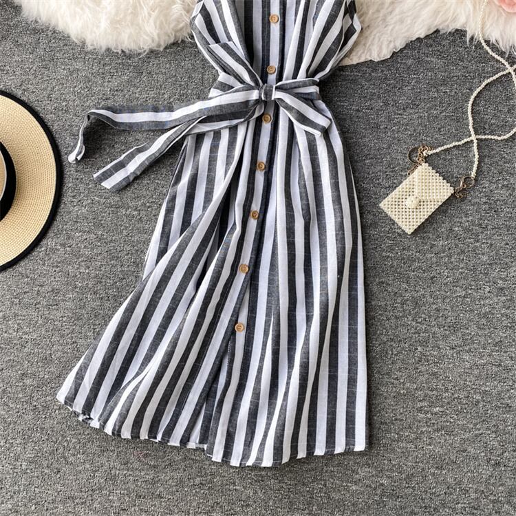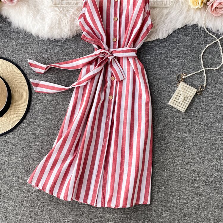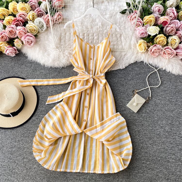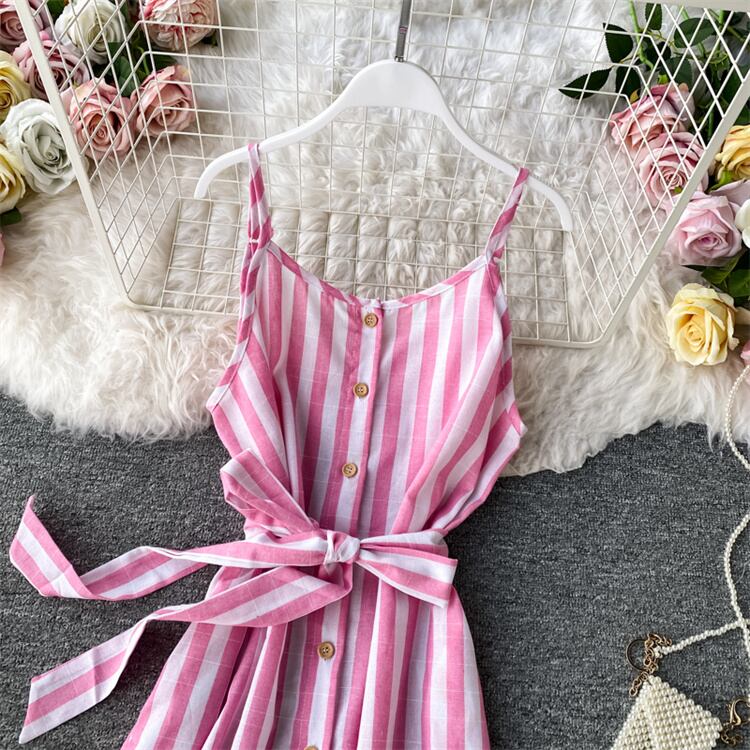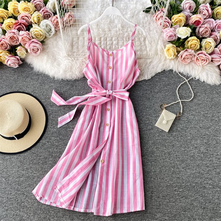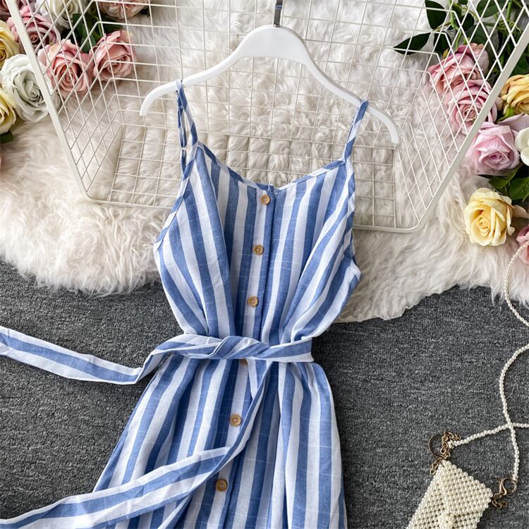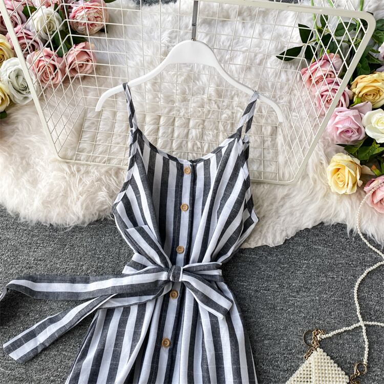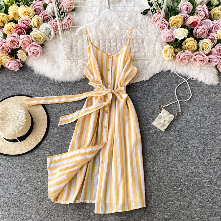 ストライプ キャミワンピ 背透けて スプリット ロングスカート セクシー Vネック スリム