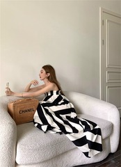 ストライプ ベアワンピ デザインセンス イレギュラー 気質 カジュアル スリム ロングスカート