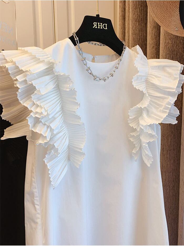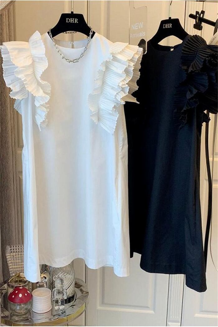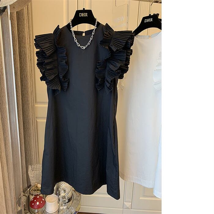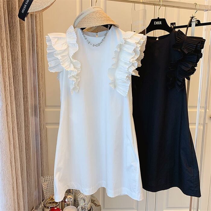 韓国ファッション 全2色 ベストワンピース フリル 切り替え 体型カバー 着痩せ 無地 sweet系