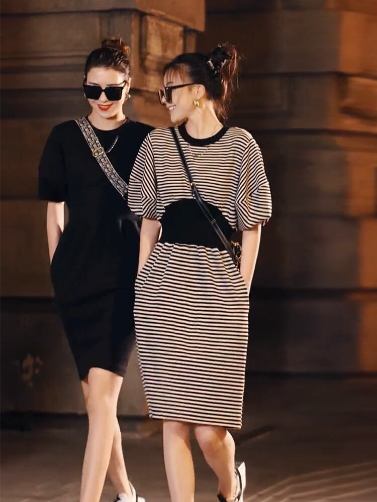 ショートスカート ストライプ 受け取って腰 ワンピース デザイン スリム Aライン タイトスカート