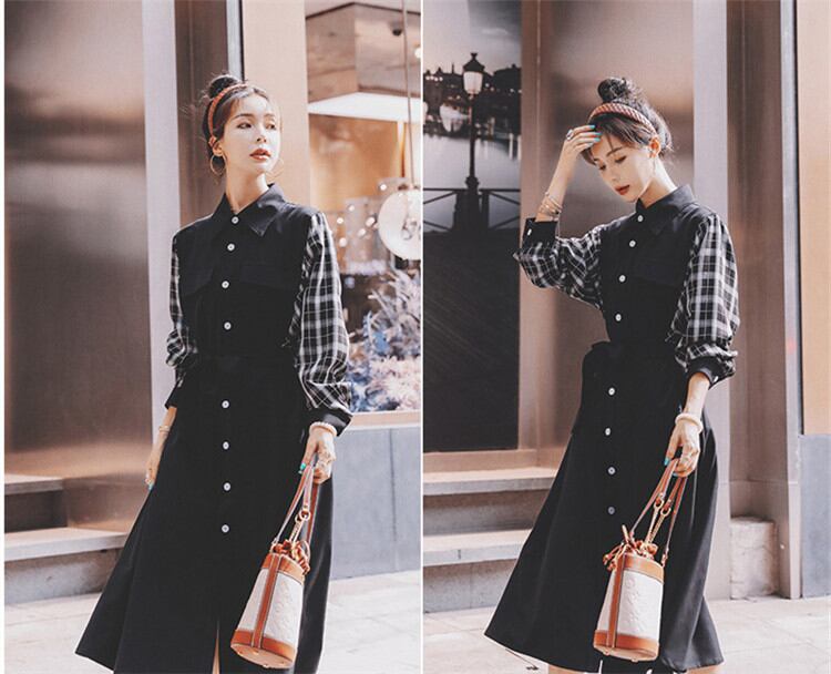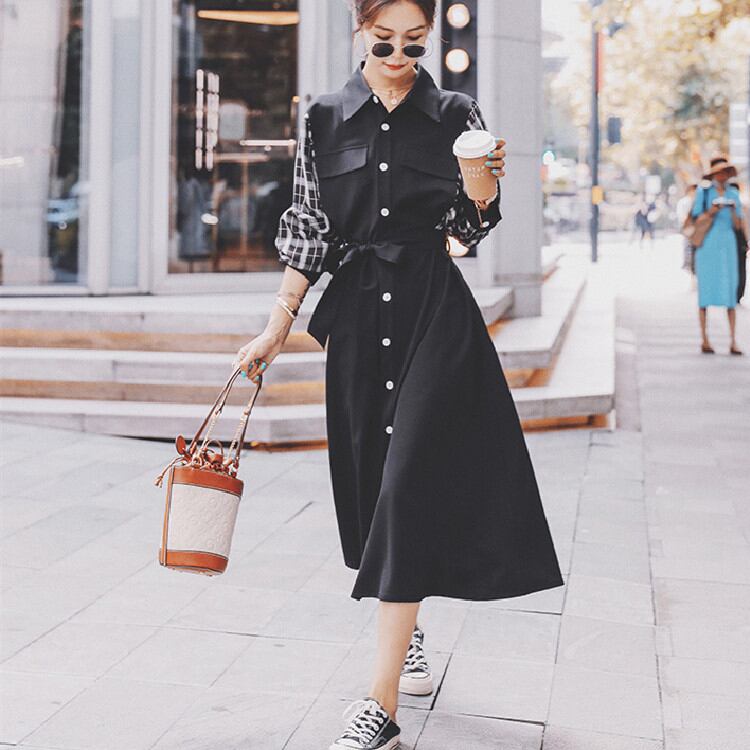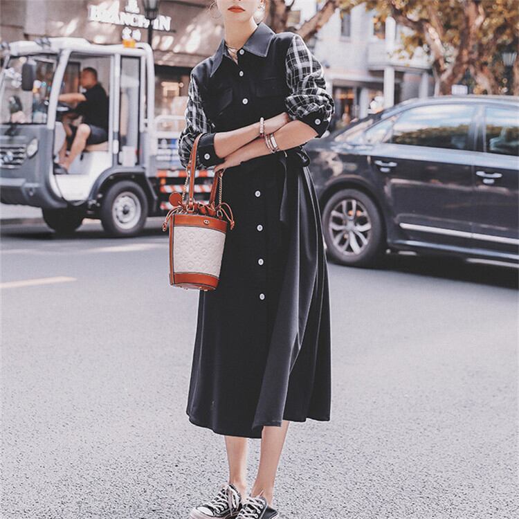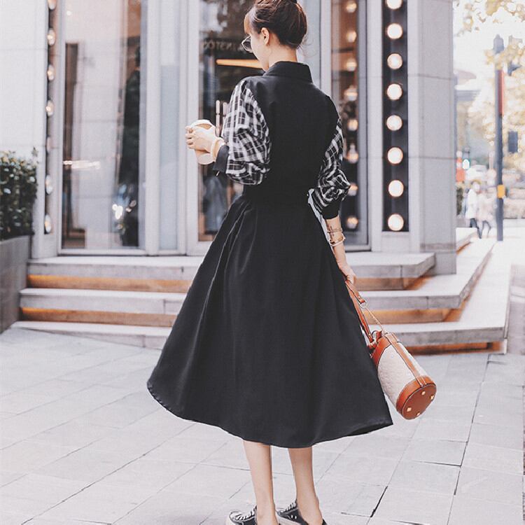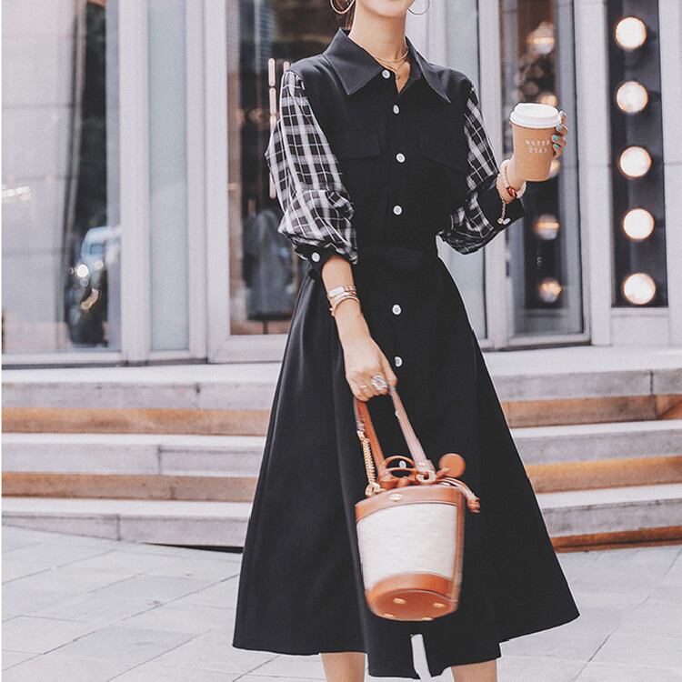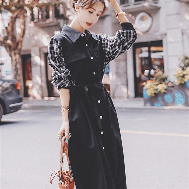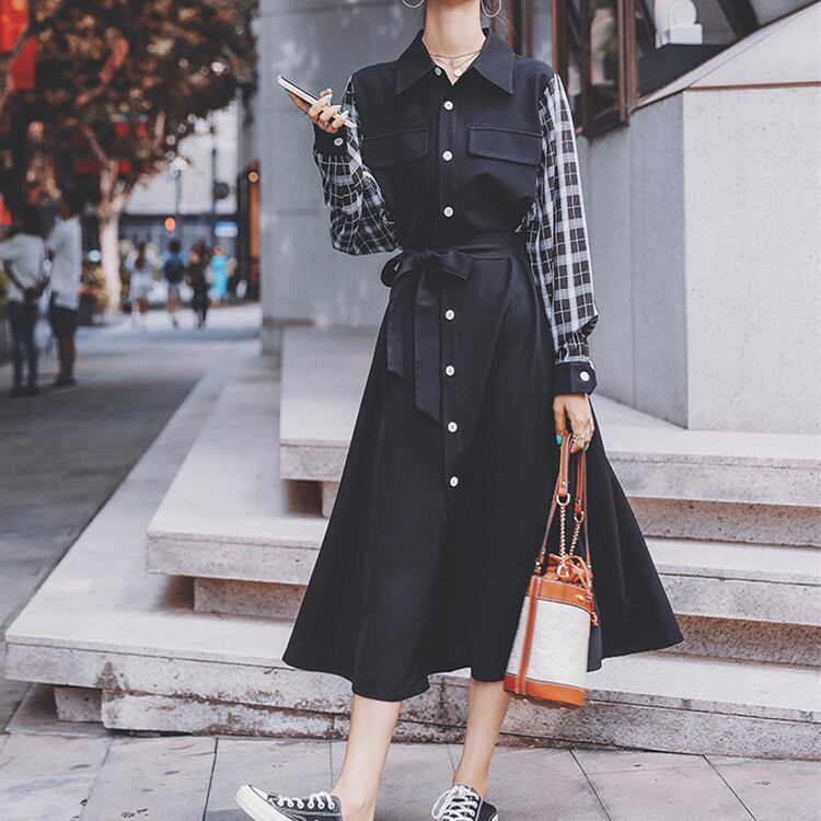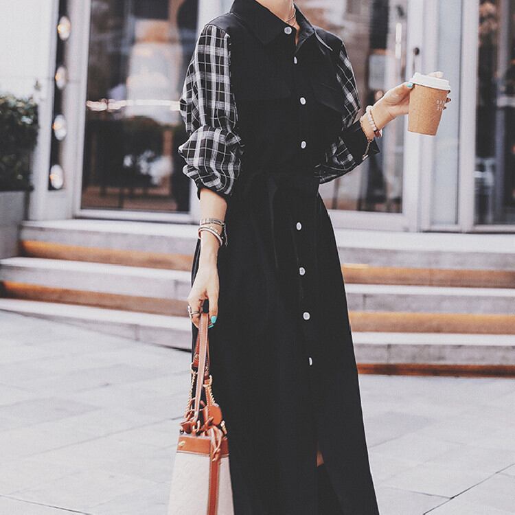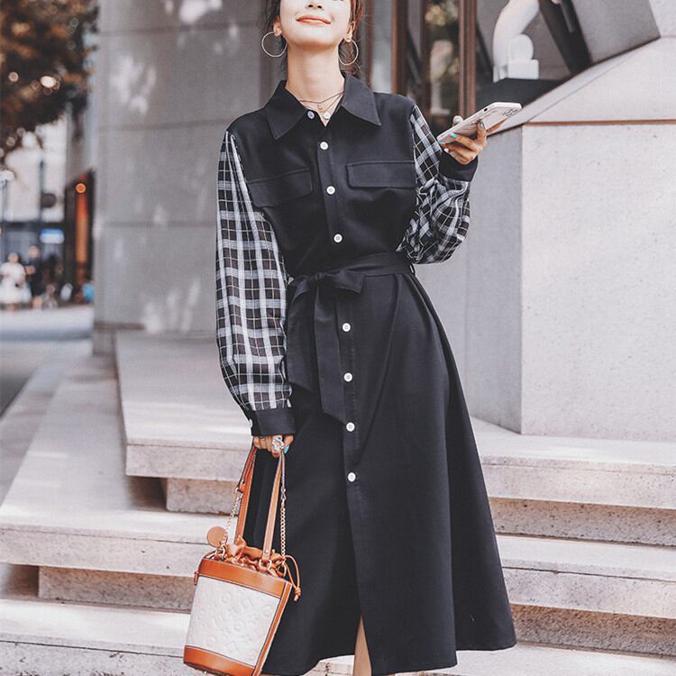 バンディング シャツワンピ ゆったりする ワンピース 2022年新作 格子縞 縫付