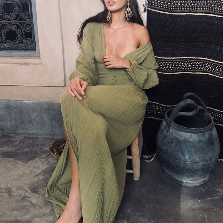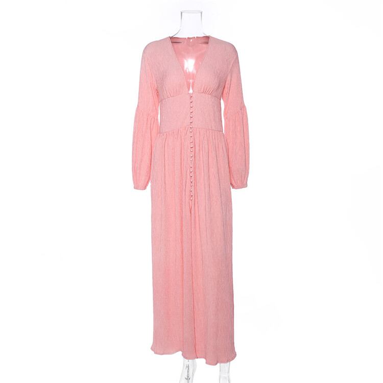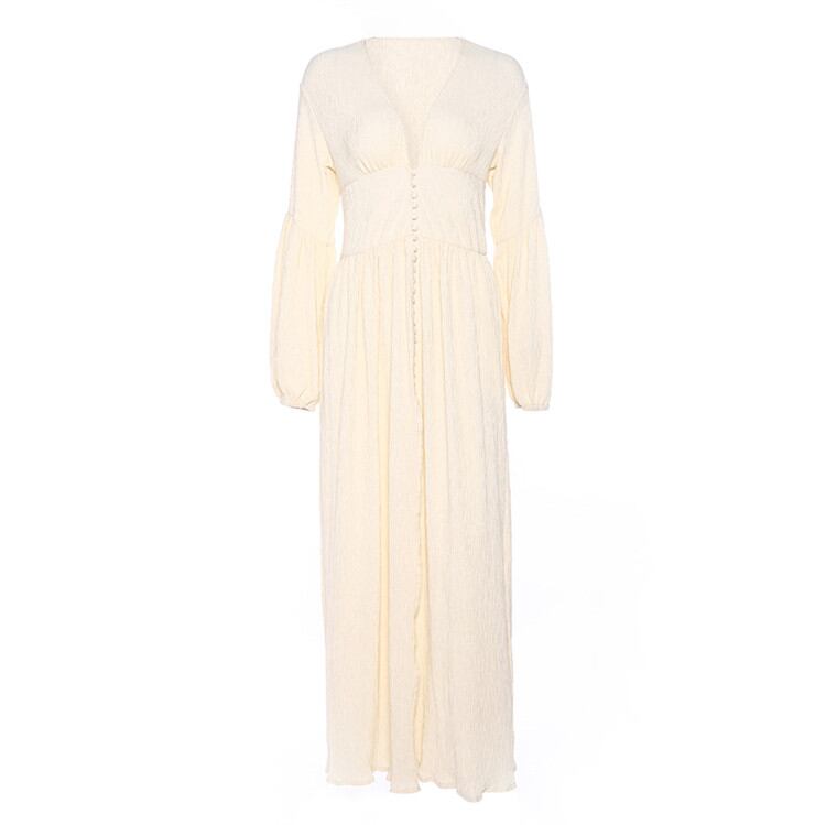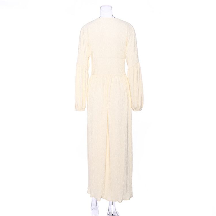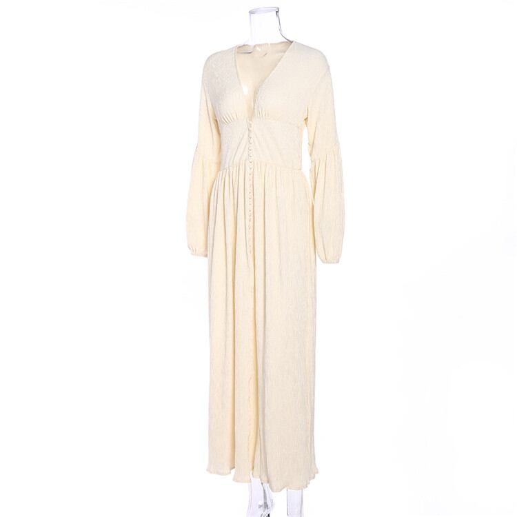新品 レトロ Vネック ロング 気質 長袖 ワンピース 腰を括る フォールド ゆったりする