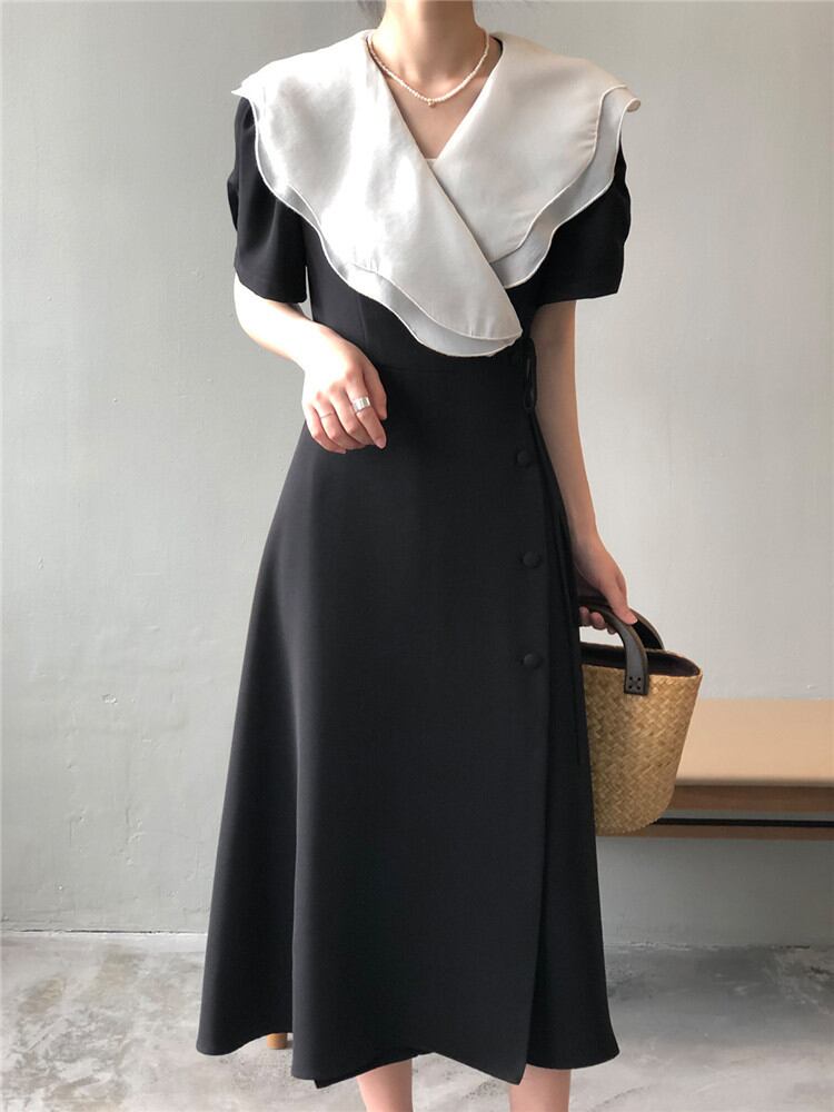 ワンピース 22022年夏新作 パフスリーブ 受け取って腰 バンディング スカート