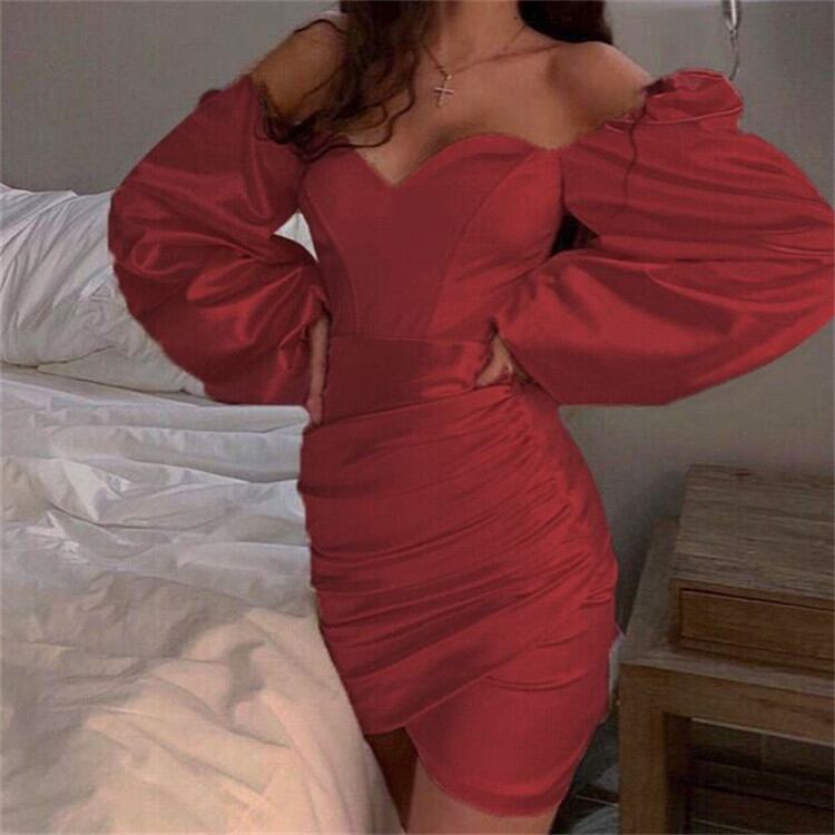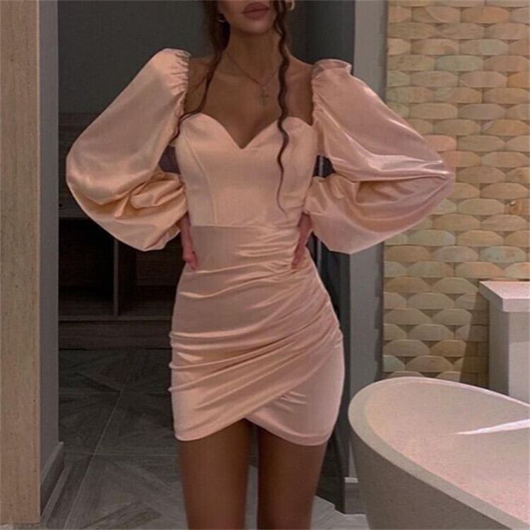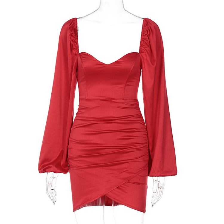 レディース スクエアネック ランタンスリーブ スリム タイトスカート 気質 ワンピース