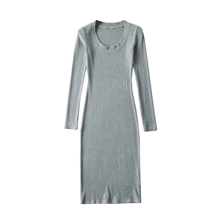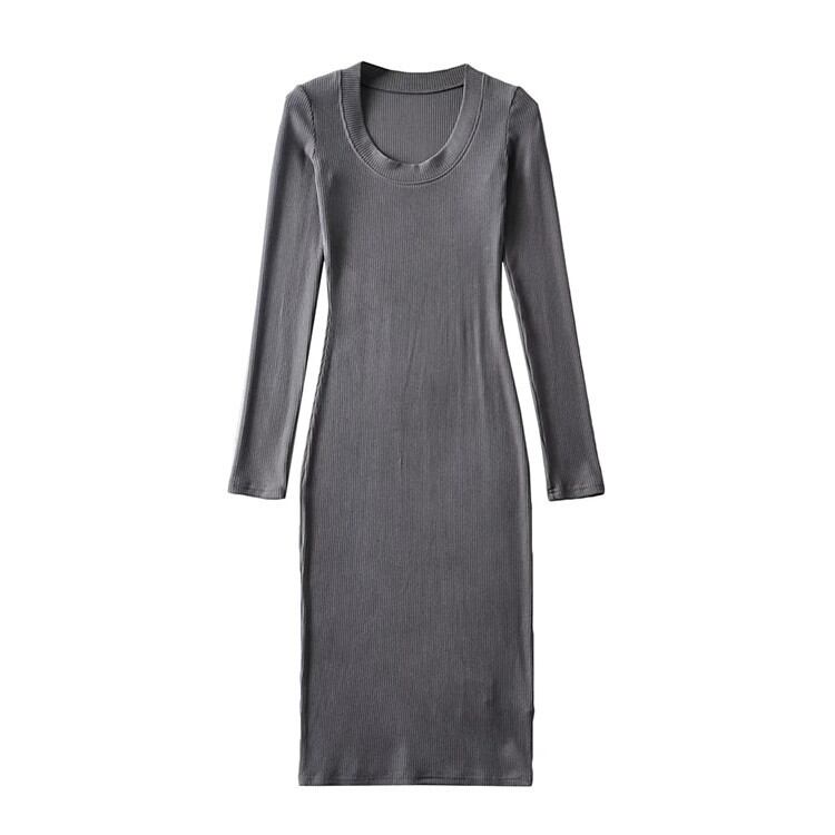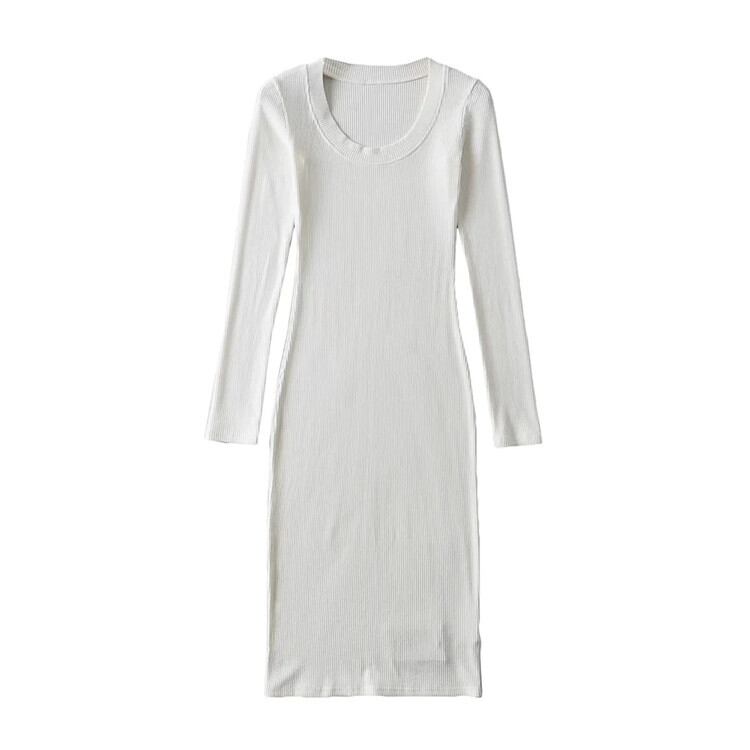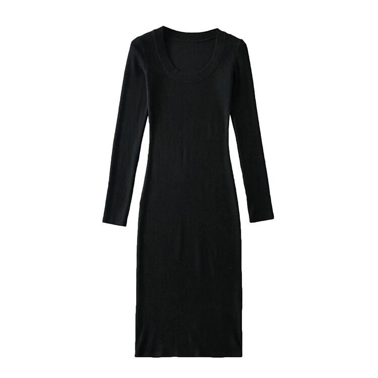 長袖 タイト タイトスカート ワンピース 中・長セクション レトロ ラウンドネック