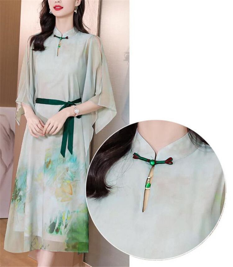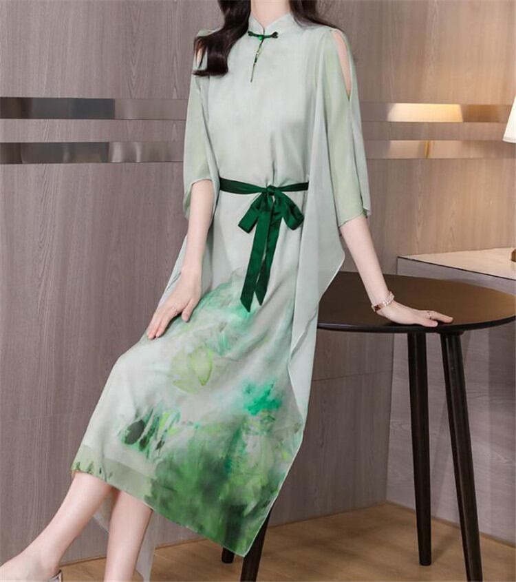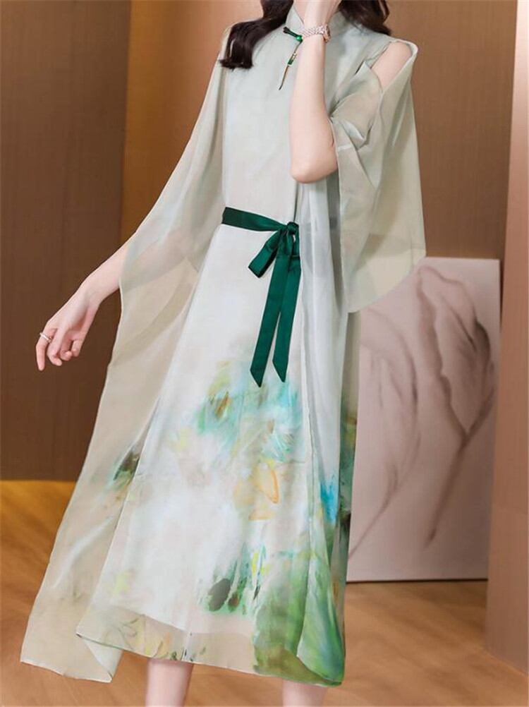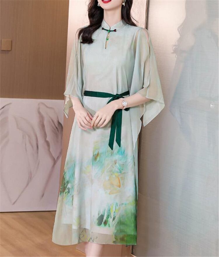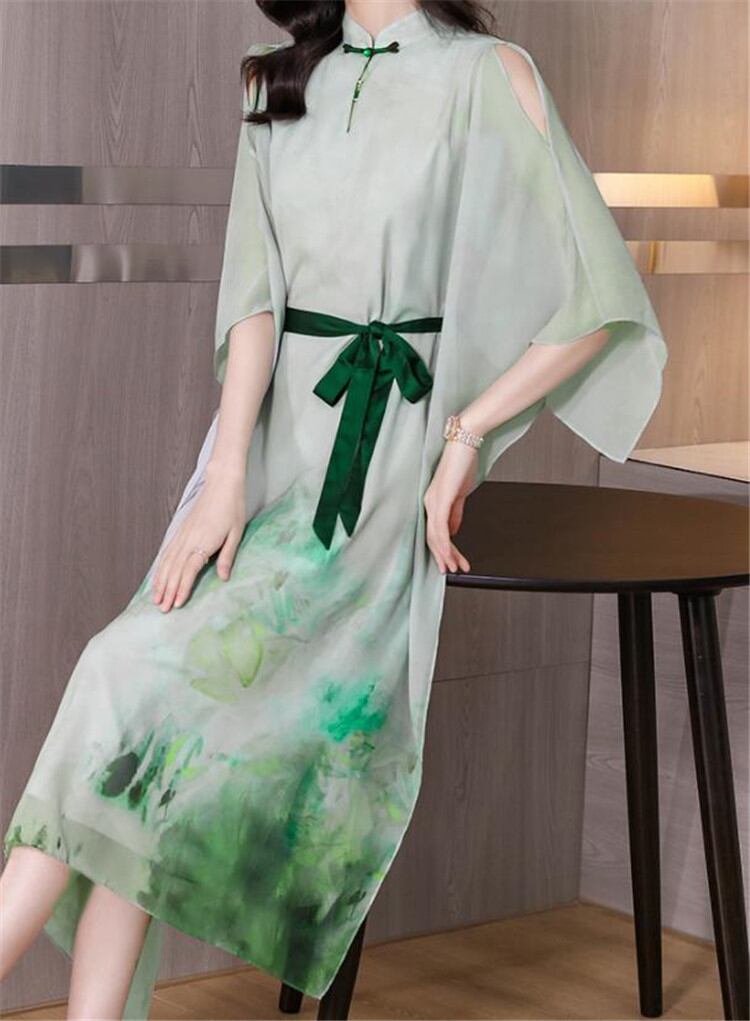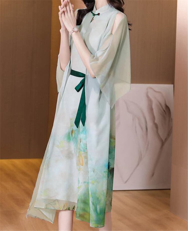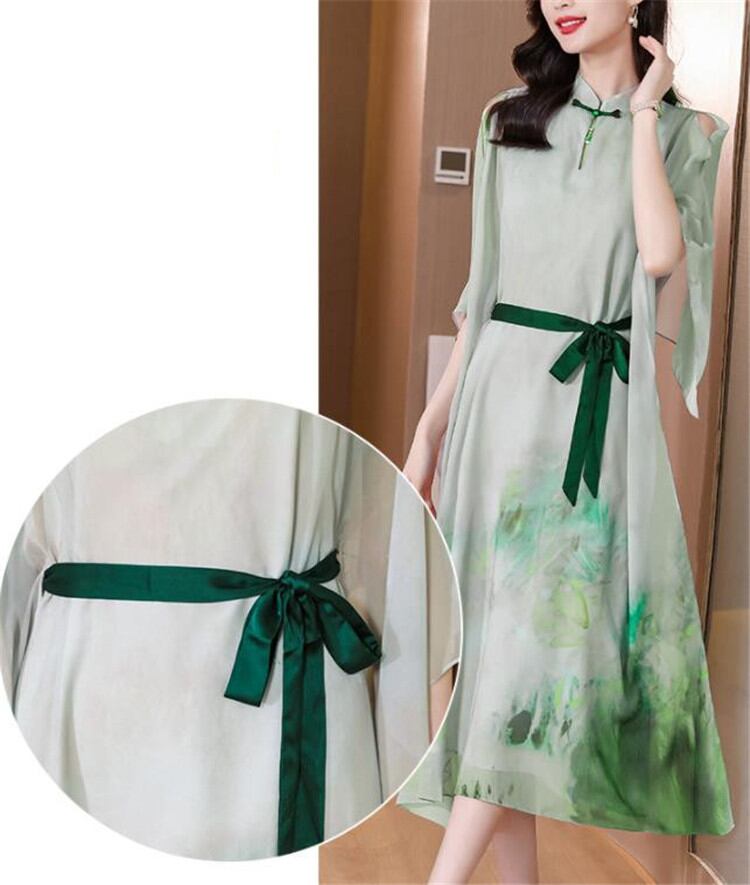 ワンピース レトロ プリント 大きい裾 レディース 夏 受け取って腰 気質 中国の風