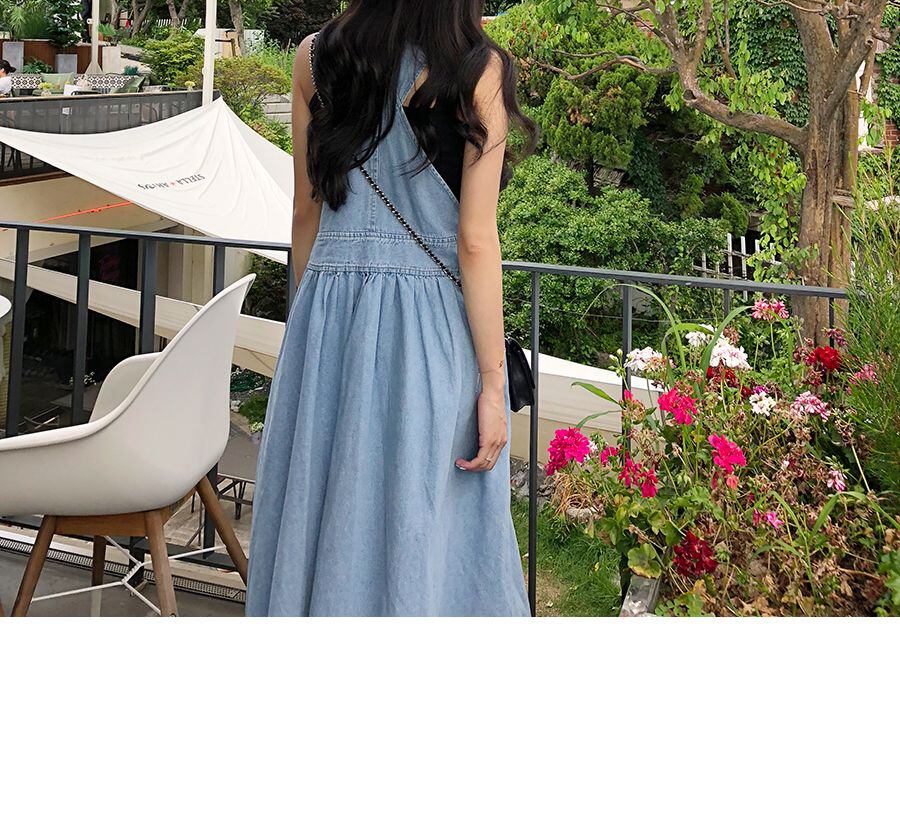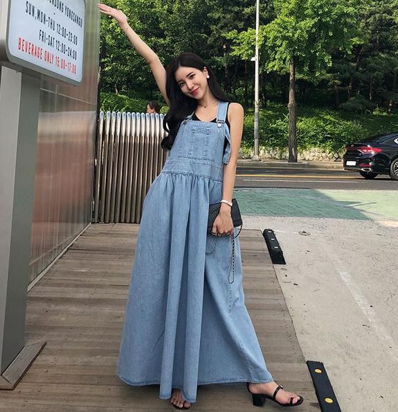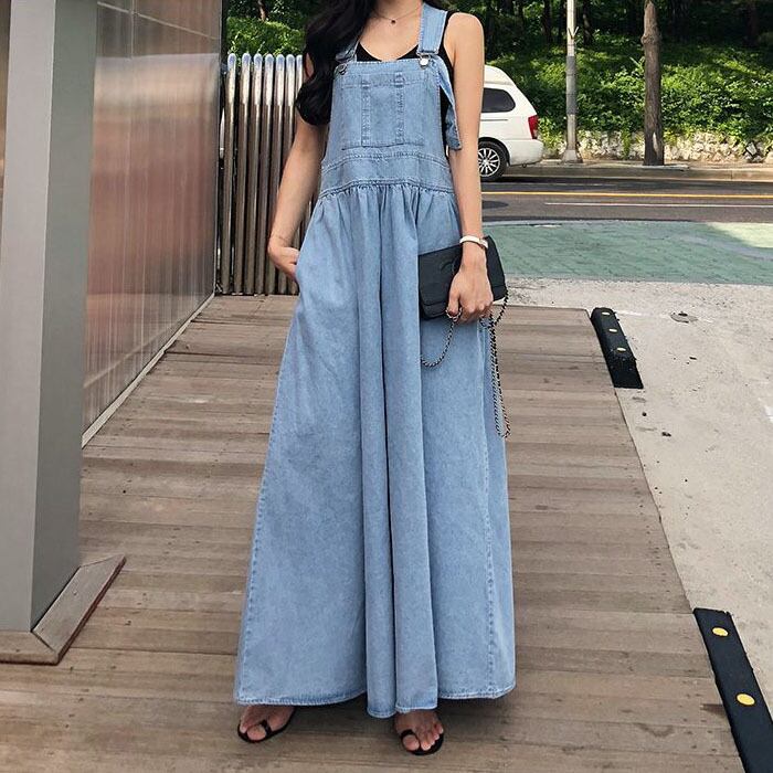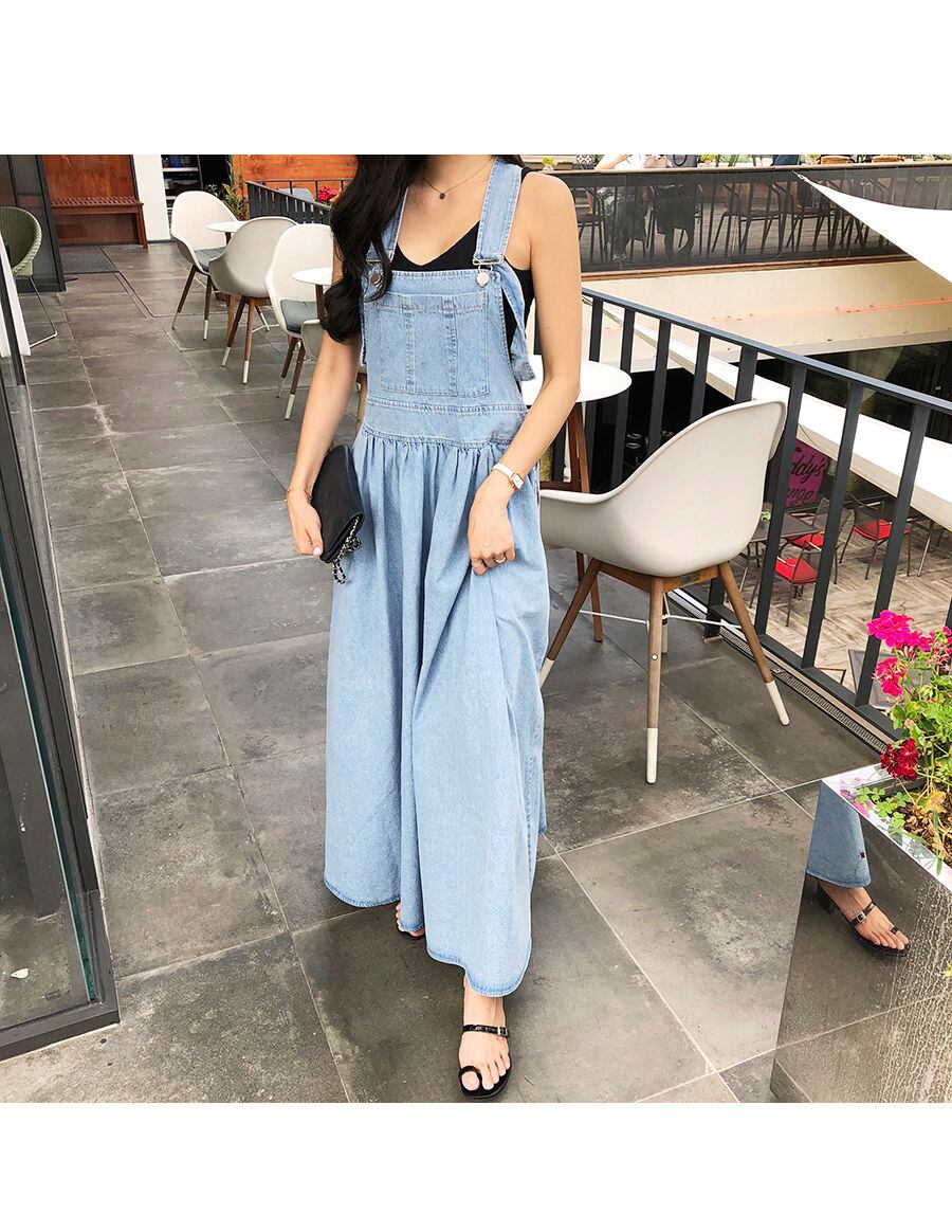 大人カジュアルに着るマキシ丈サロペットワンピース。