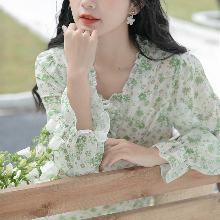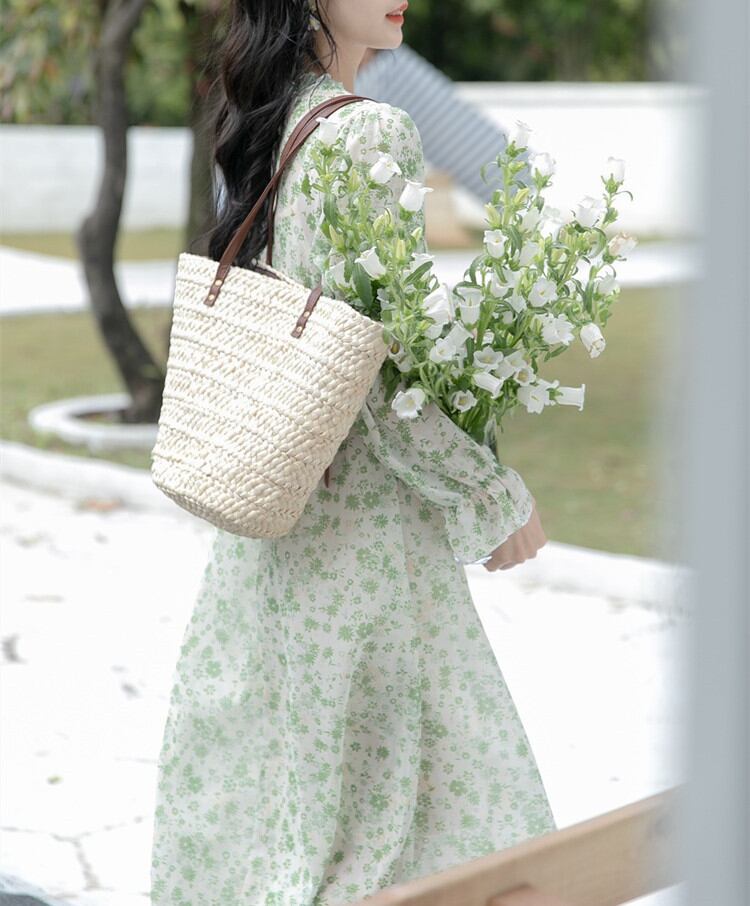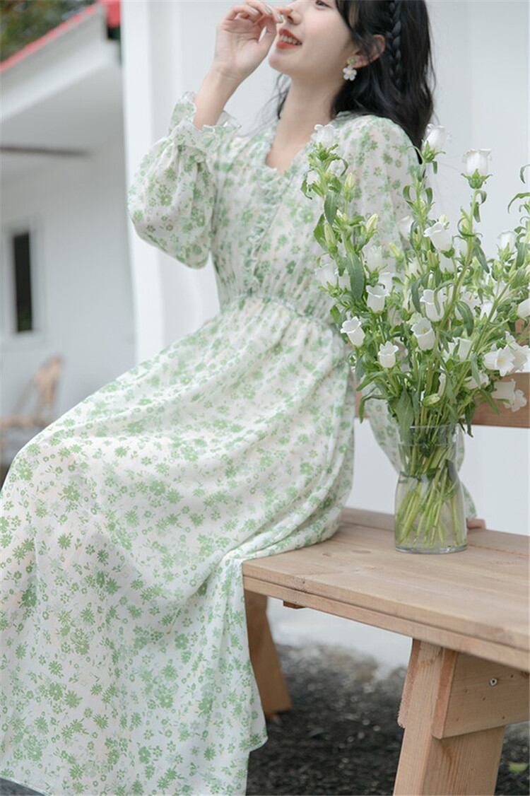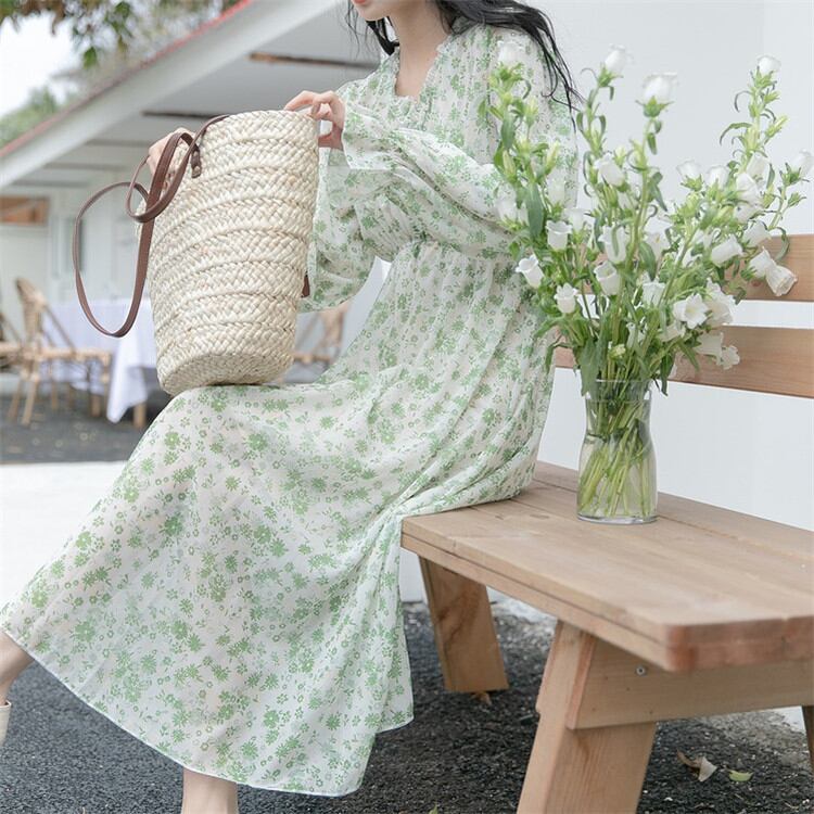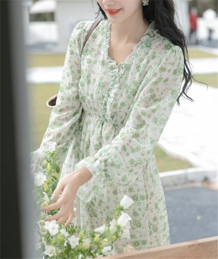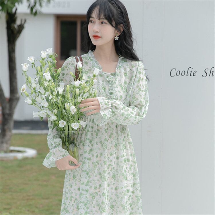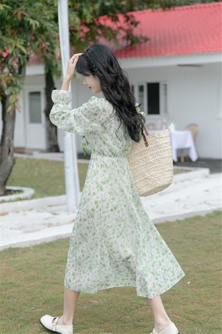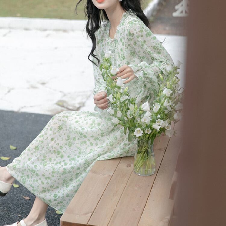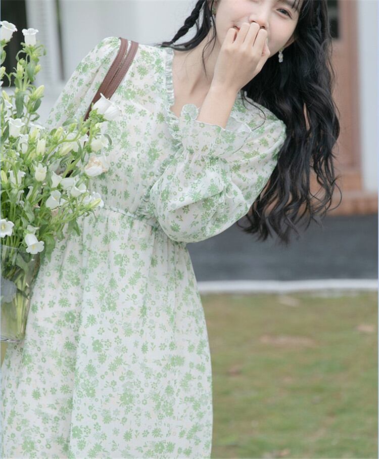 小さい新鮮な ロングスカート パフスリーブ ワンピース レトロ デザインセンス 個性