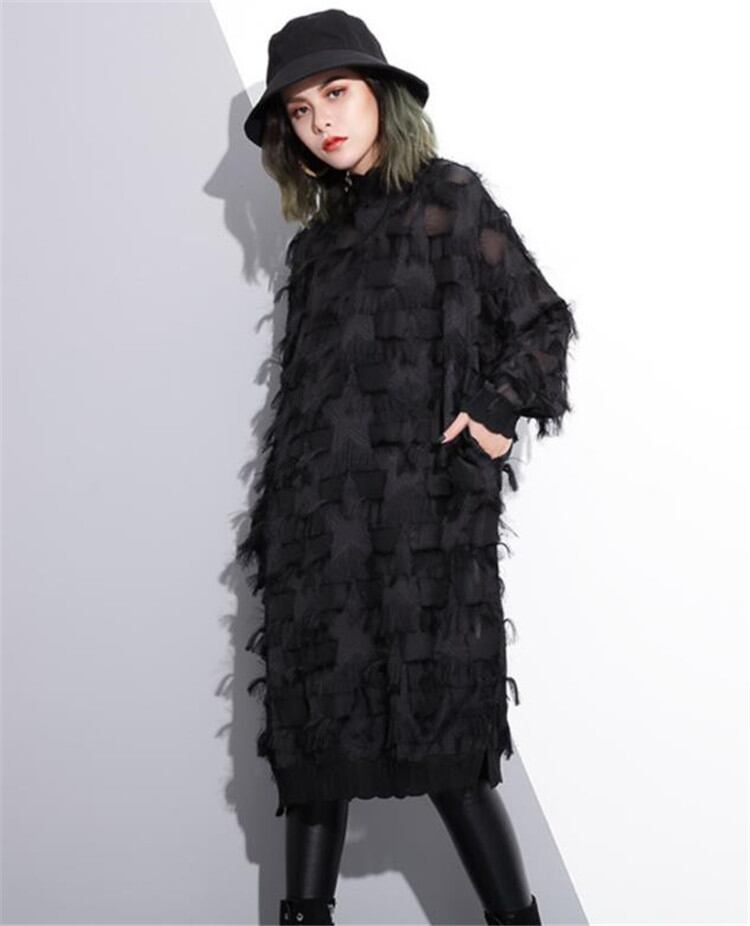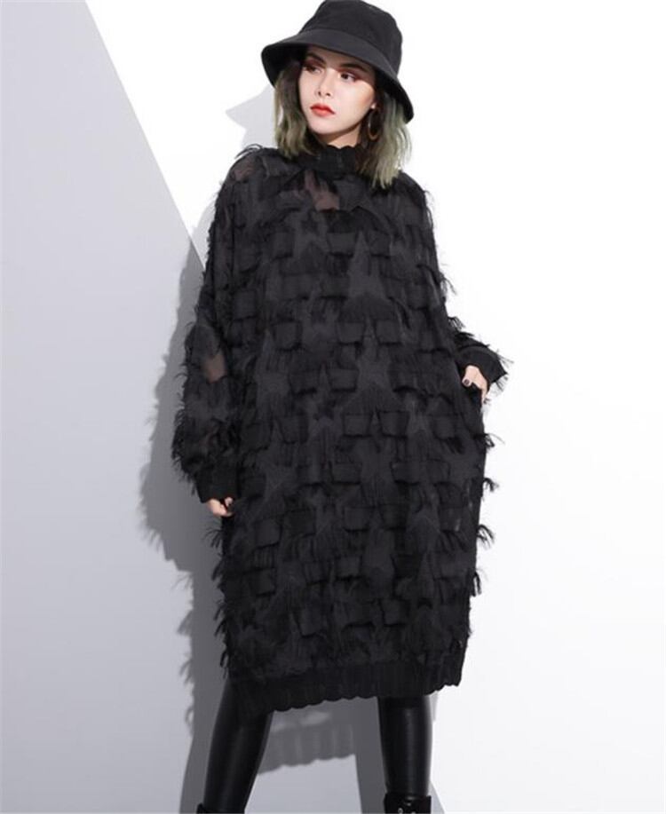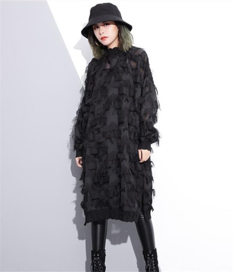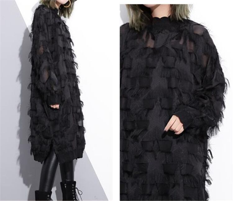 レーヨン トップス レース ワンピース 春秋2022 長袖 スリム 中・長セクション