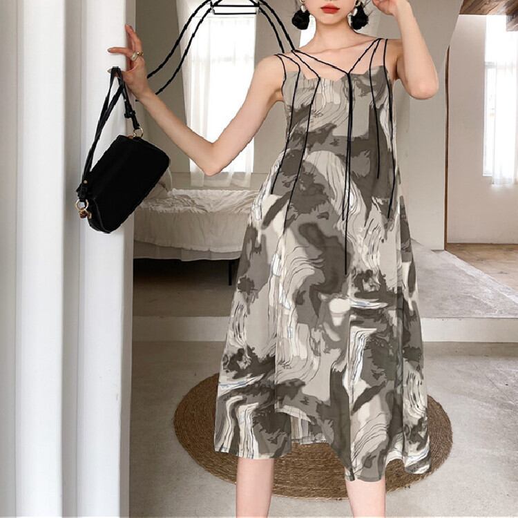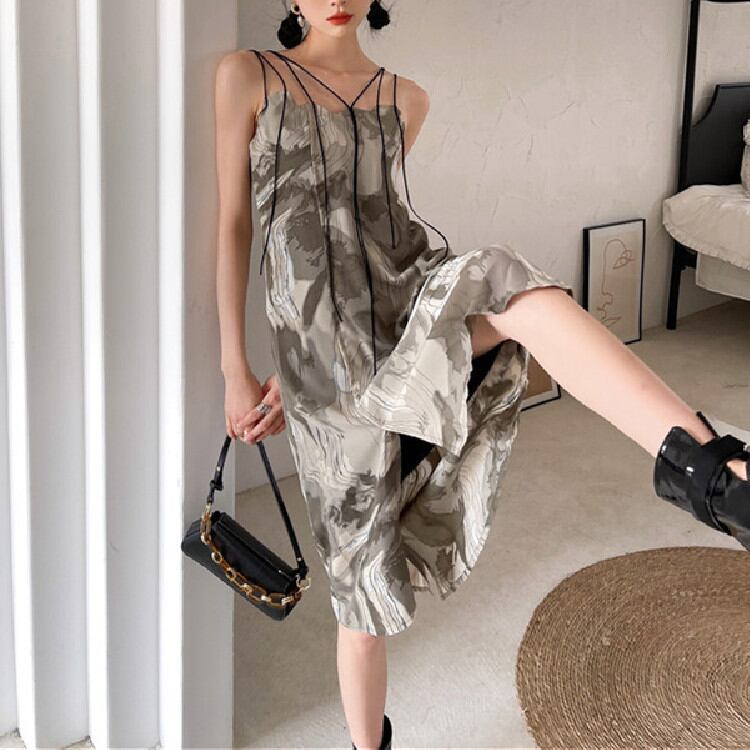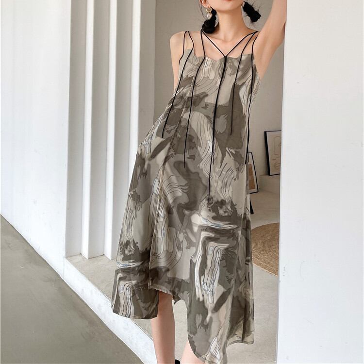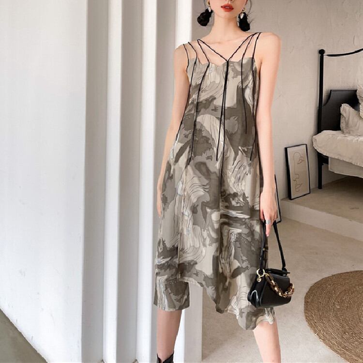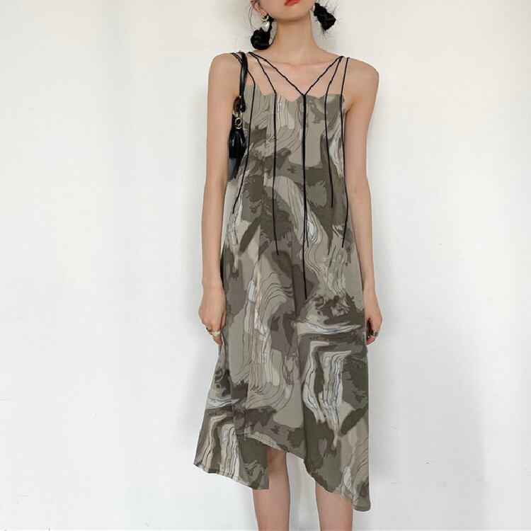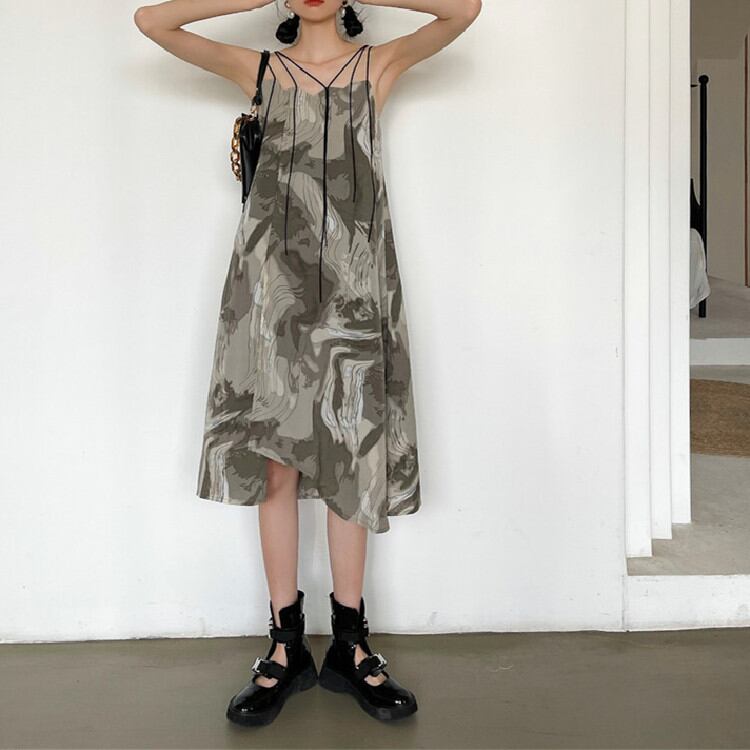デザインセンス プリント sweet系 レディース 気質 スエード キャミワンピ