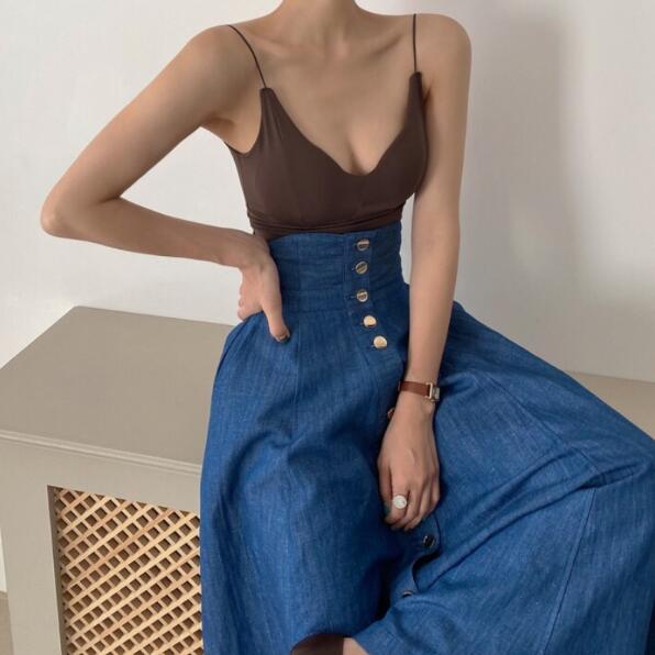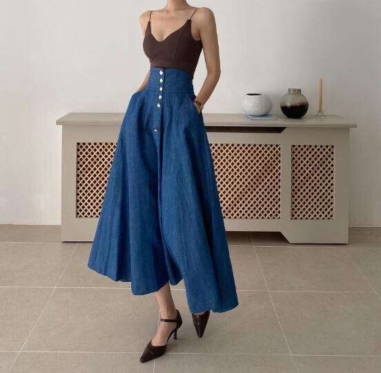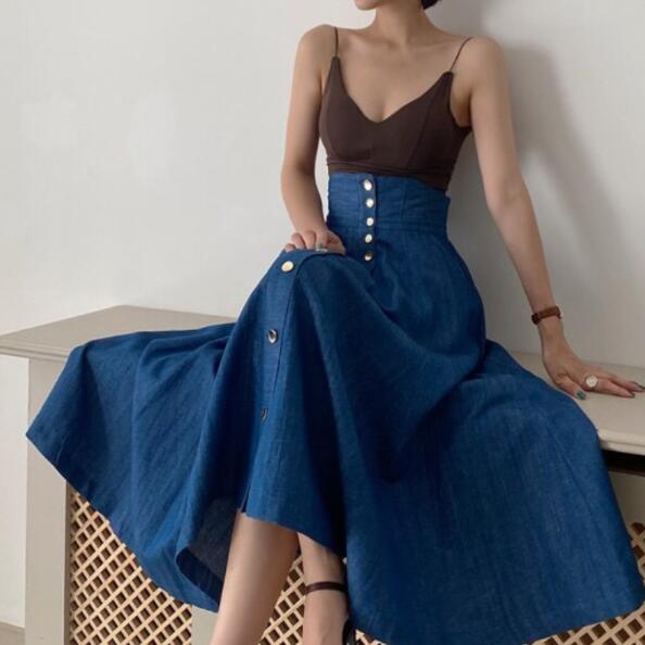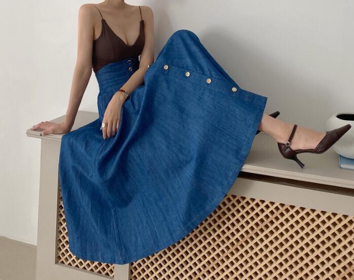 ボトムス ボトムス レディース スカートロング丈 Aライン ハイウェスト デニムスカート