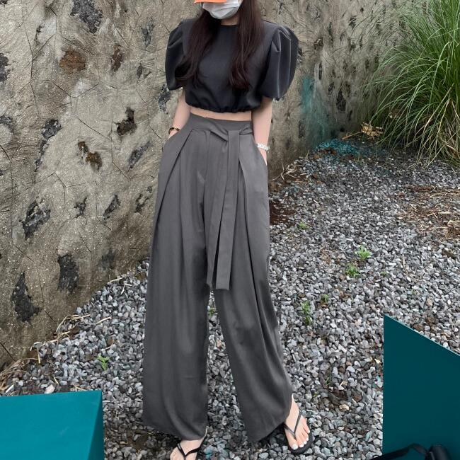 足を長くスリムに見せてくれるワイドパンツ。
