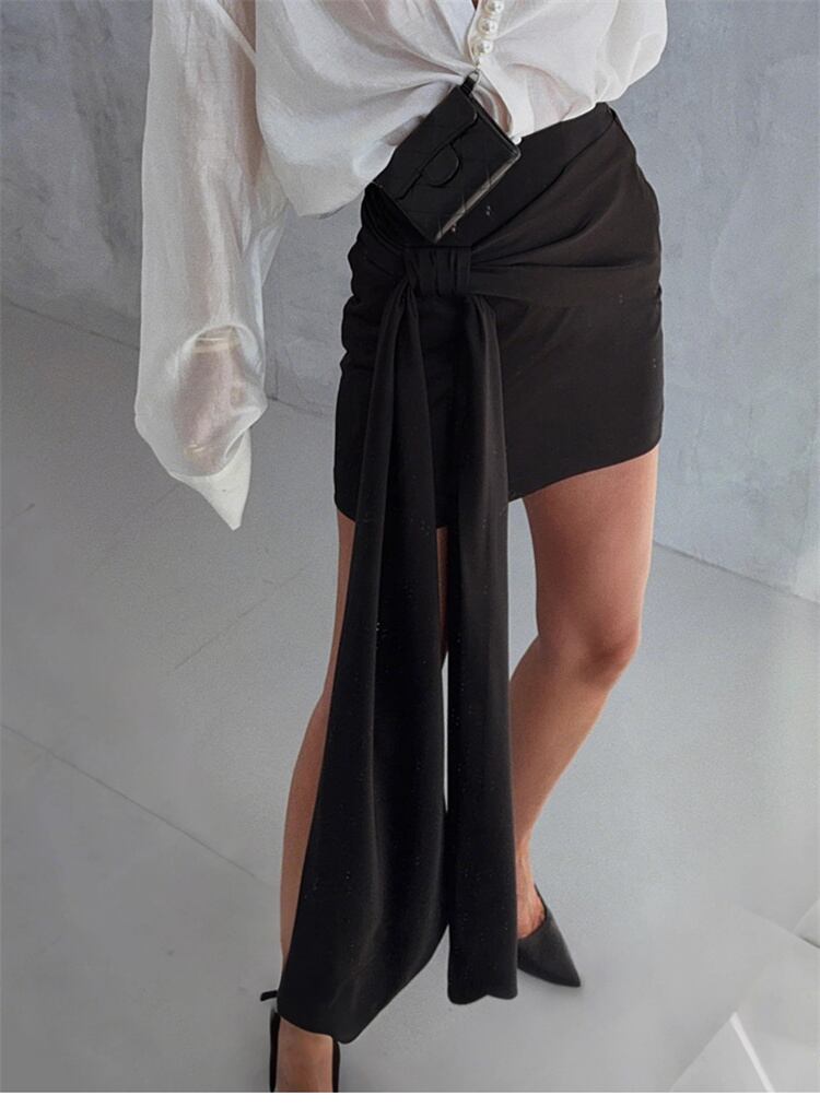 春夏向け 短めスカート 女性 リボン結び 欧米ファッション