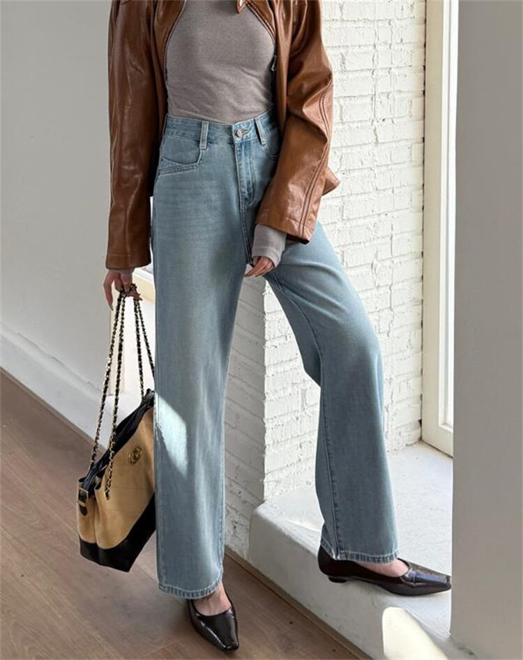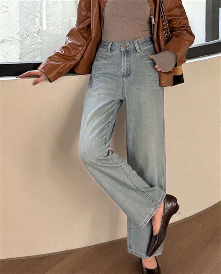 2025秋冬 レディース ハイウエスト ストレートジーンズ 新作