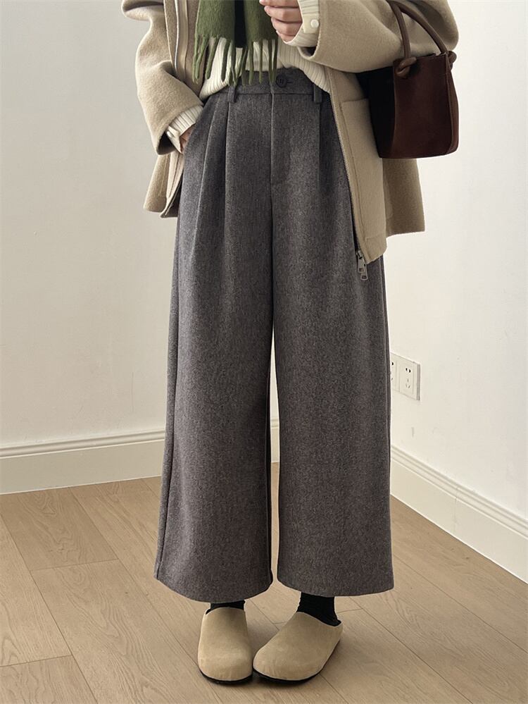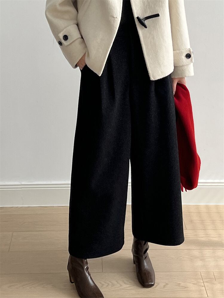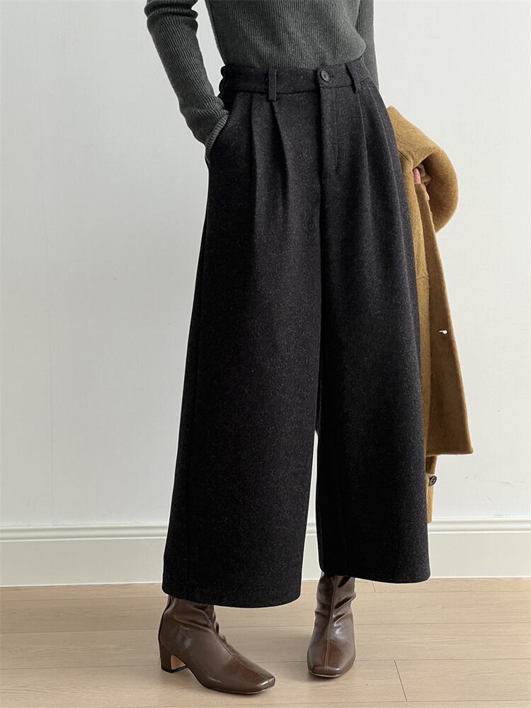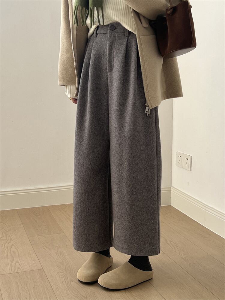 レトロハイウエスト ウールブロード ルーズストレートパンツ 2025秋冬 ロング/9分