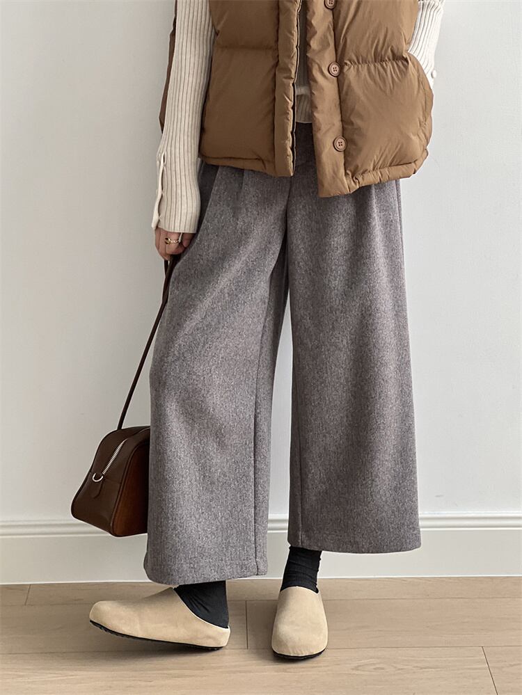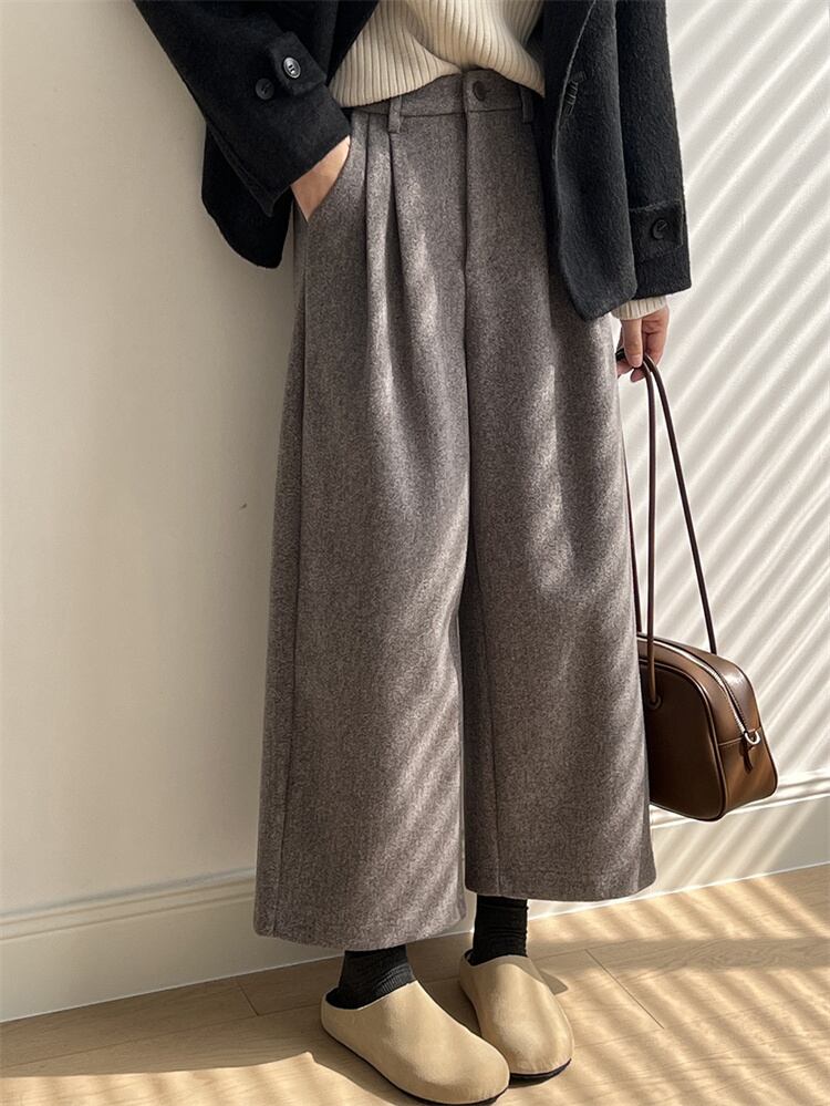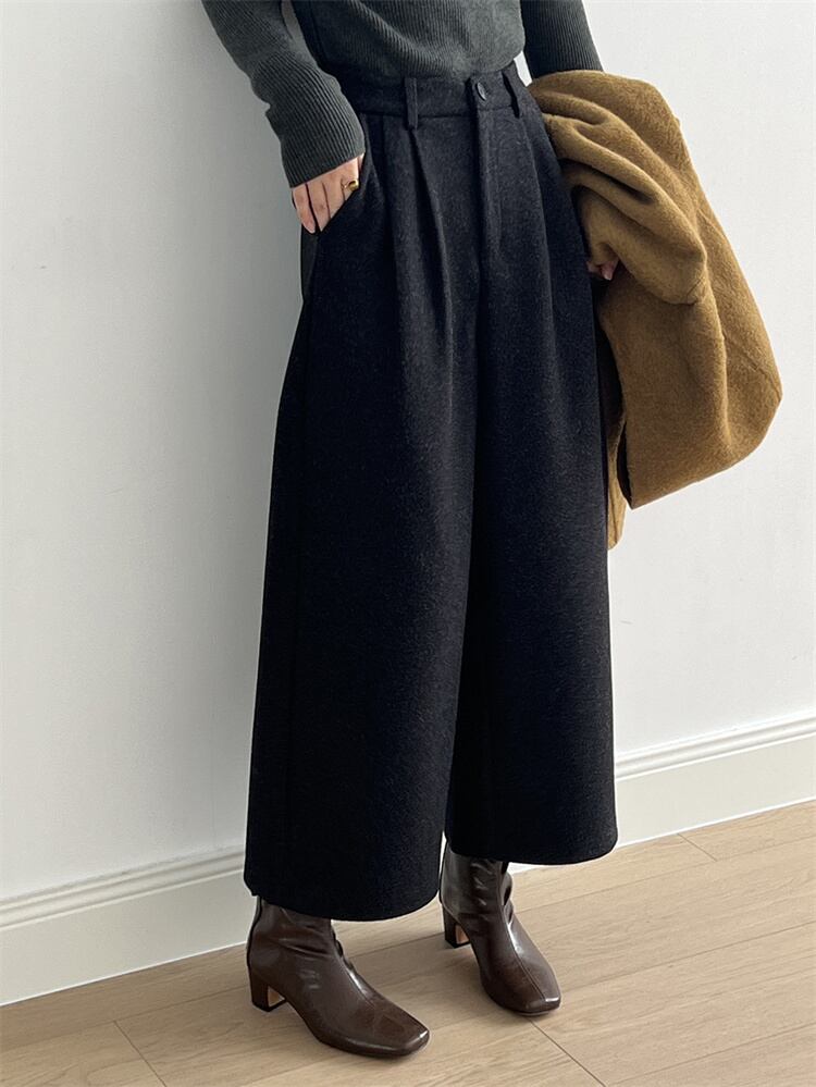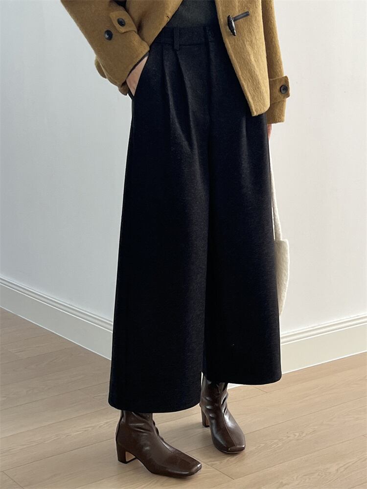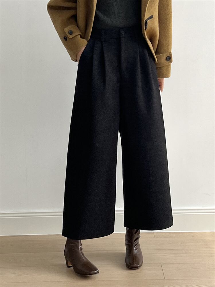 レトロハイウエスト ウールブロード ルーズストレートパンツ 2025秋冬 ロング/9分