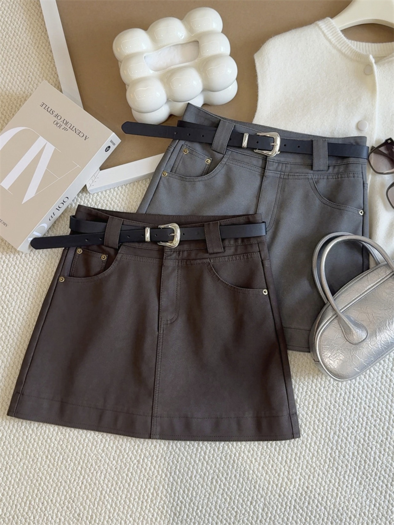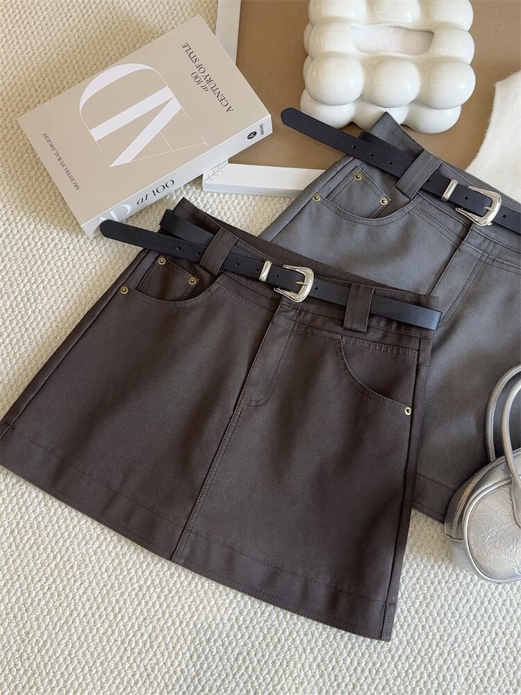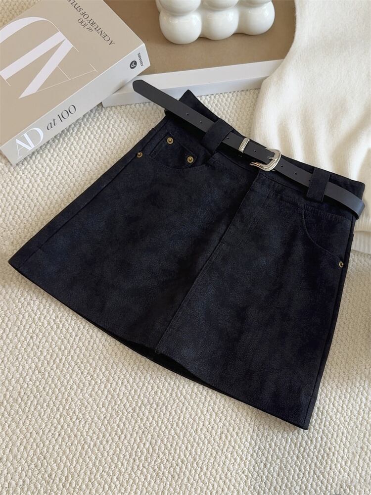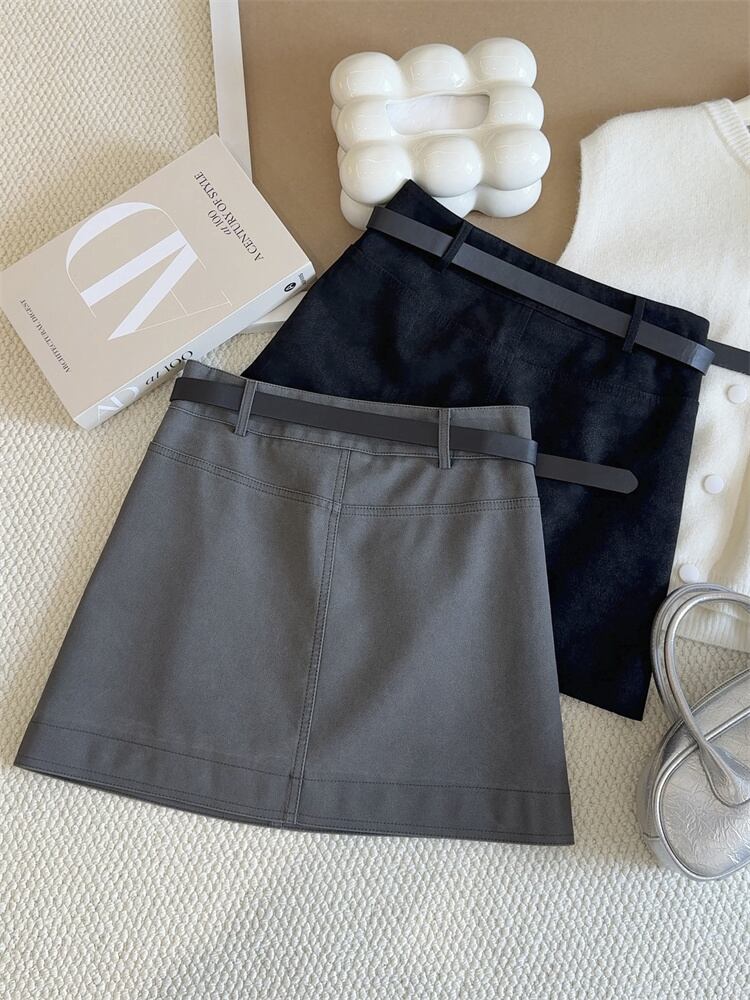 ウエストマークで脚がすっと長く見える高めのAラインミニスカート;ヒップにフィットして女性らしいシルエットに♡付属のベルトでさらにスタイルアップ!カジュアルもキレイめも、1枚でぐんとおしゃれにUP∽注意事項∽