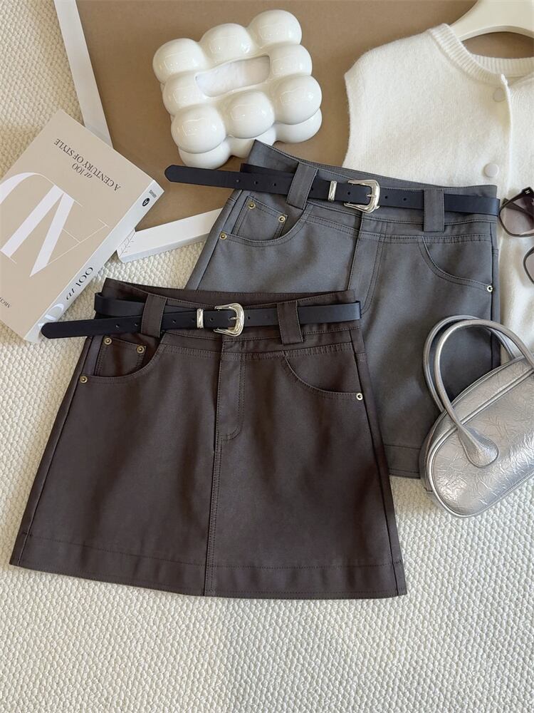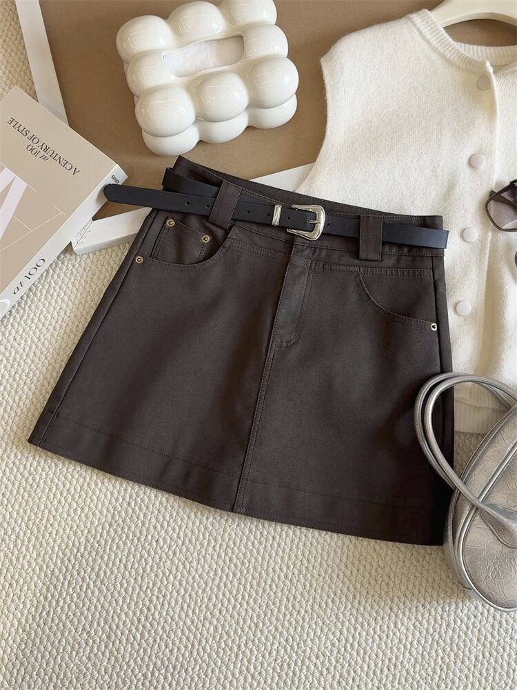 2025年春季 PUレザー ハイウエスト Aライン 短裙 防走光 新作