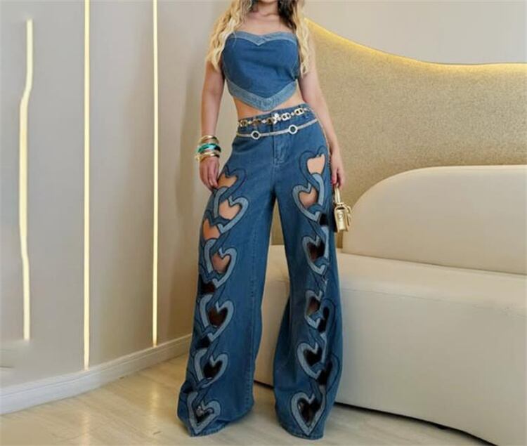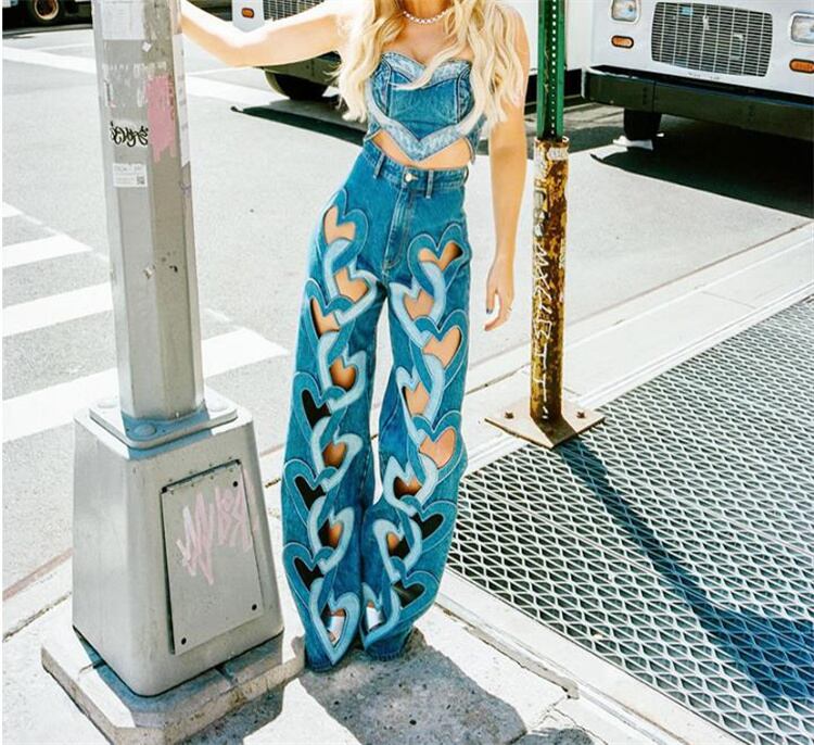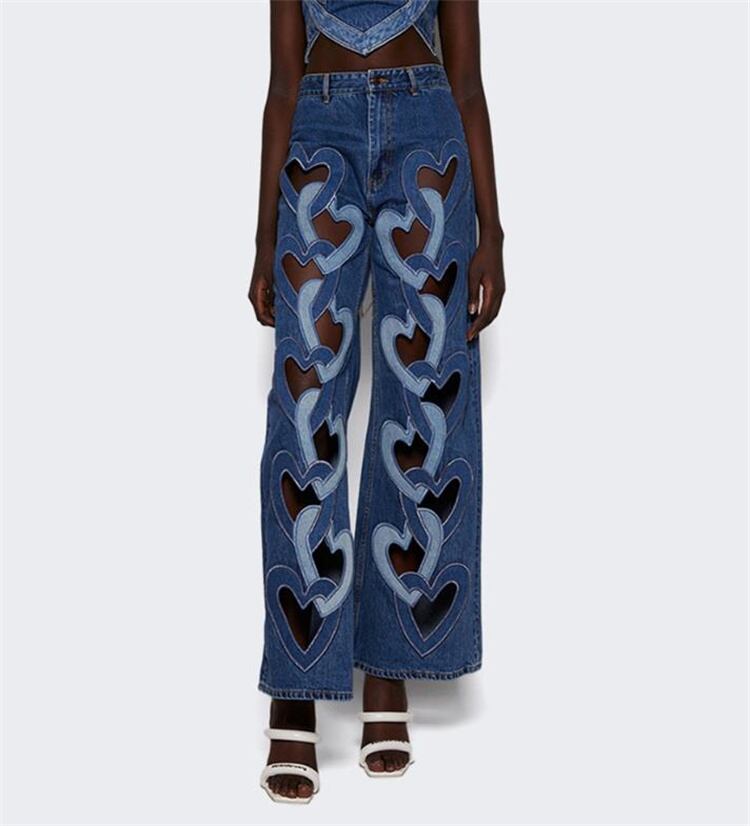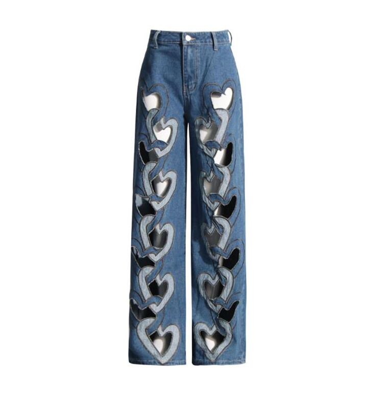 2025春夏 愛心プリント カットアウト ハイウエスト ストレートパンツ