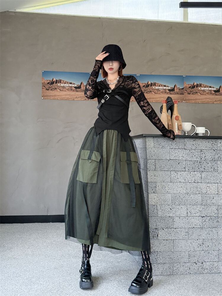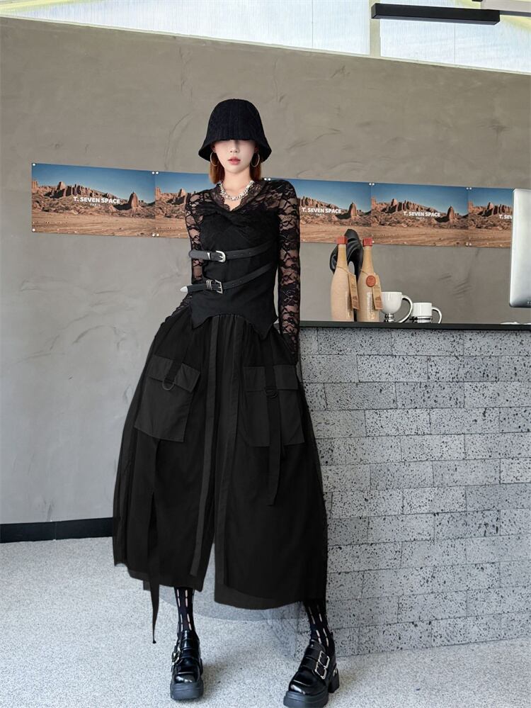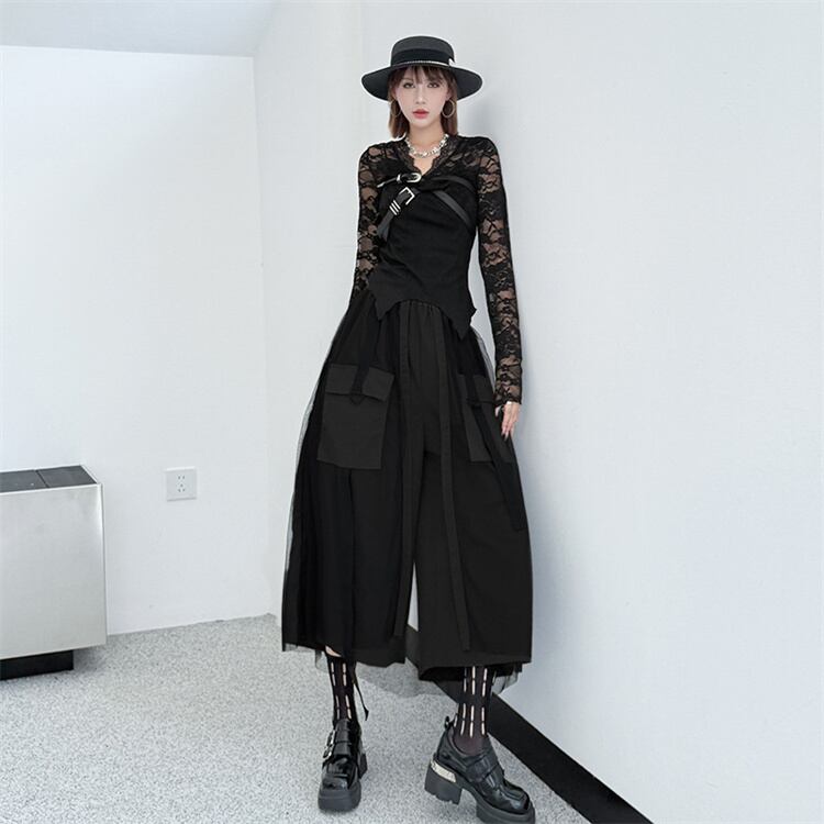 2025夏 メッシュパンツ 大きなポケット ワイドレグ カジュアル ゆったり