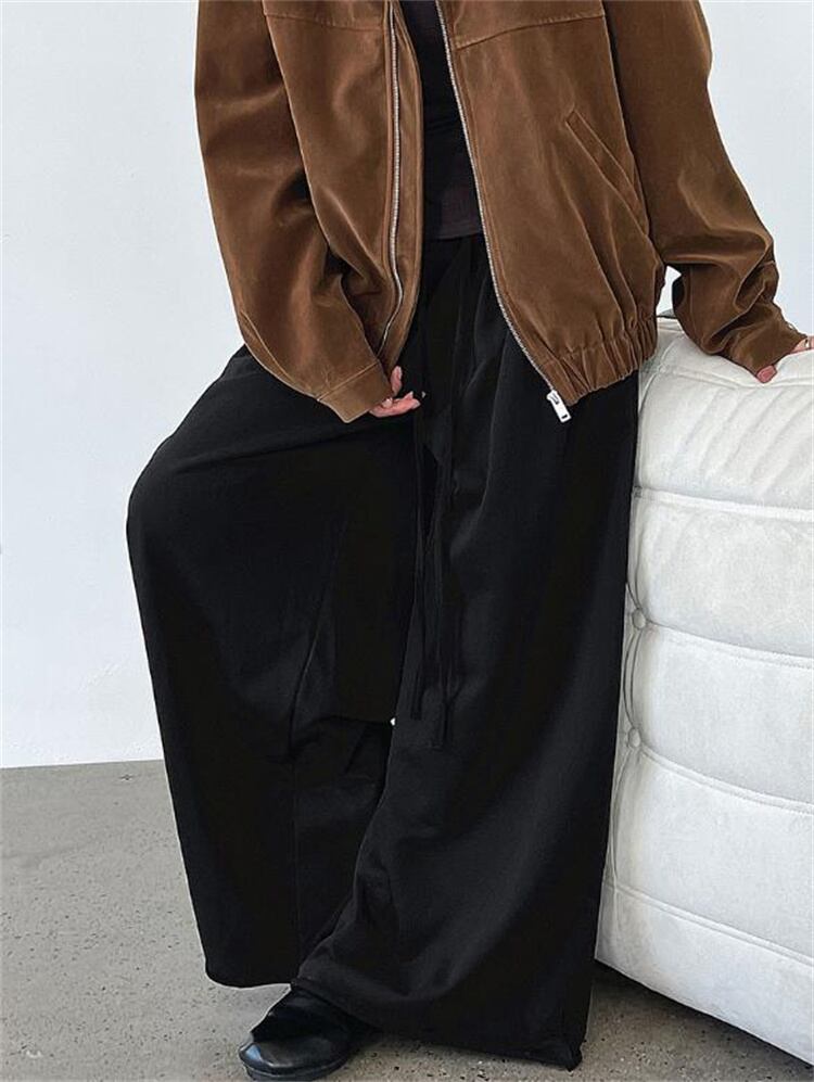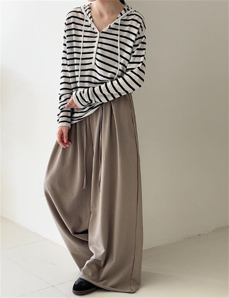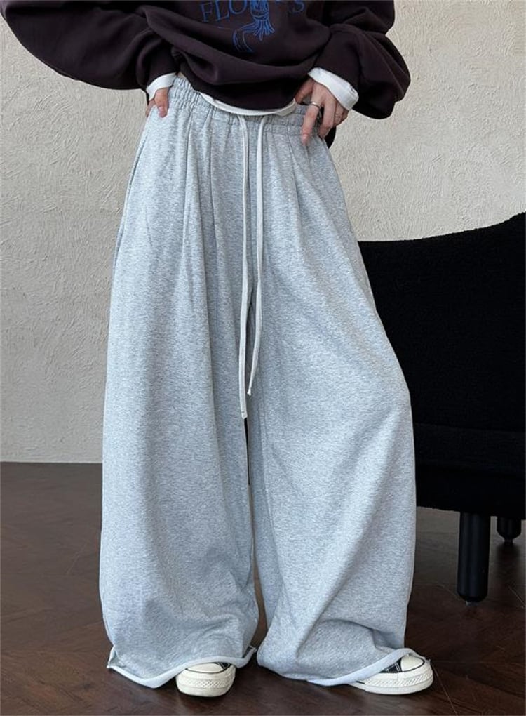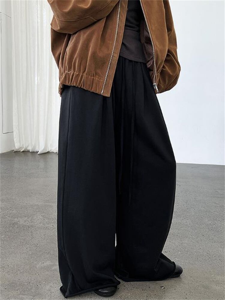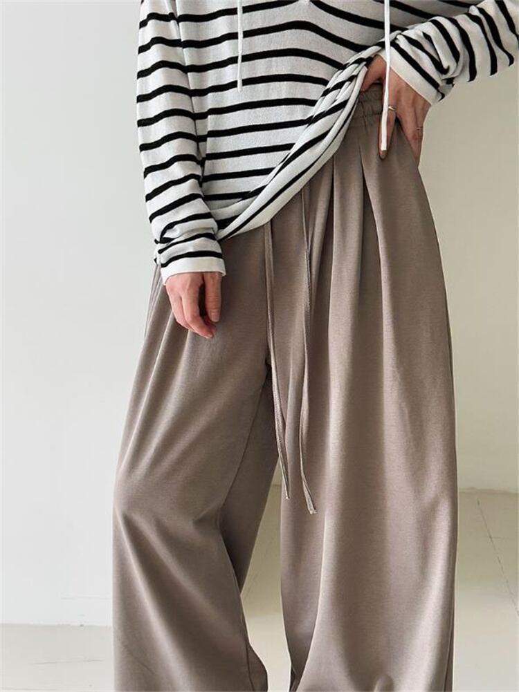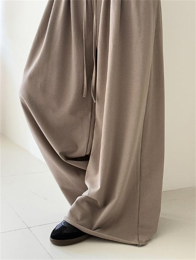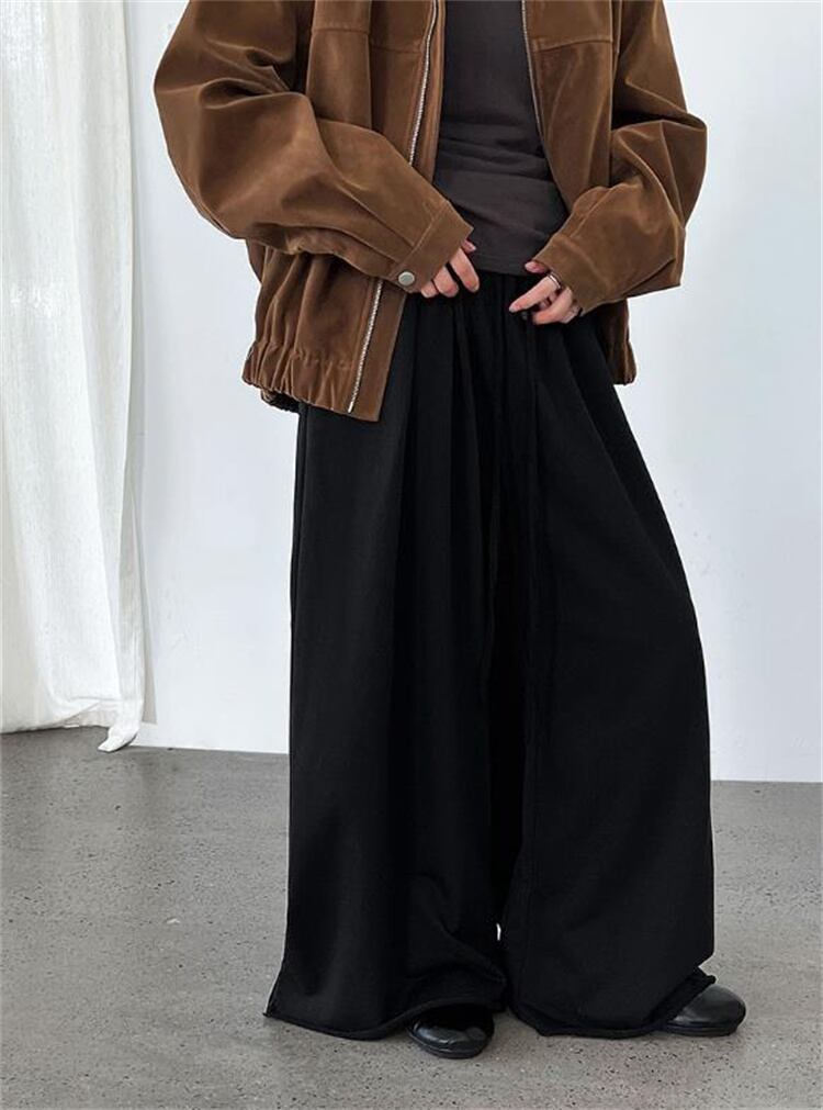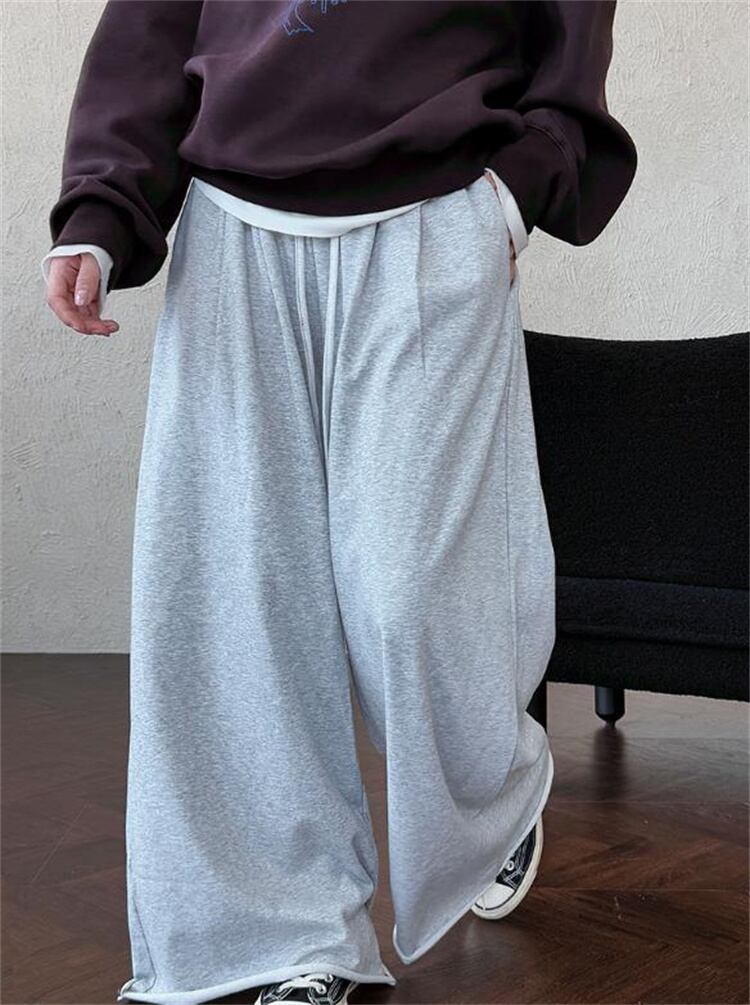 秋コレクション ハイウエスト 裾カール ワイドパンツ ゆったり運動褲 レディース デロアーデザイン