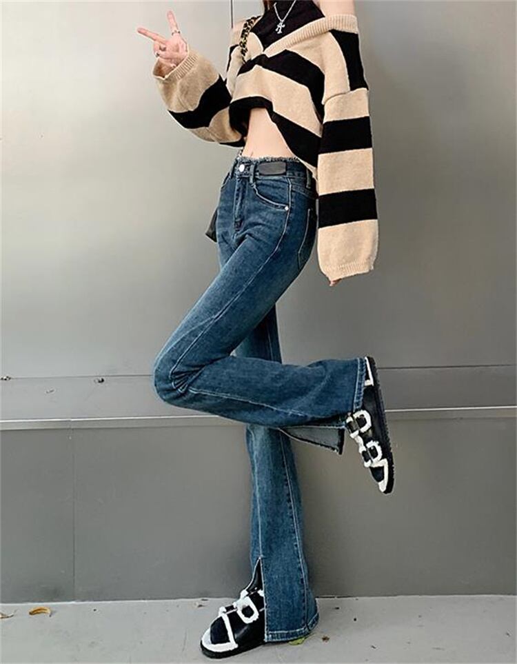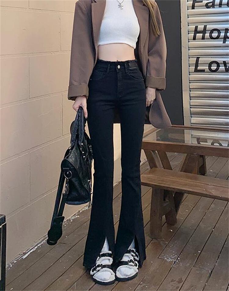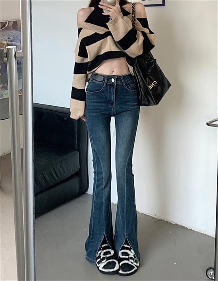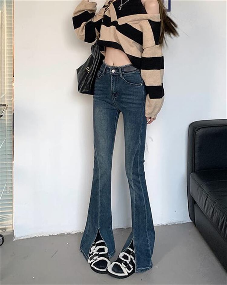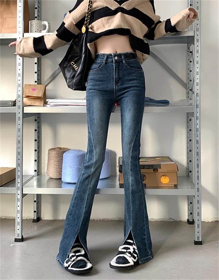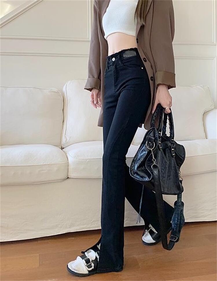 弾力 バリ スリム 快適である 気質 エレガント デザインセンス フレアパンツ ジーンズ ロングパンツ