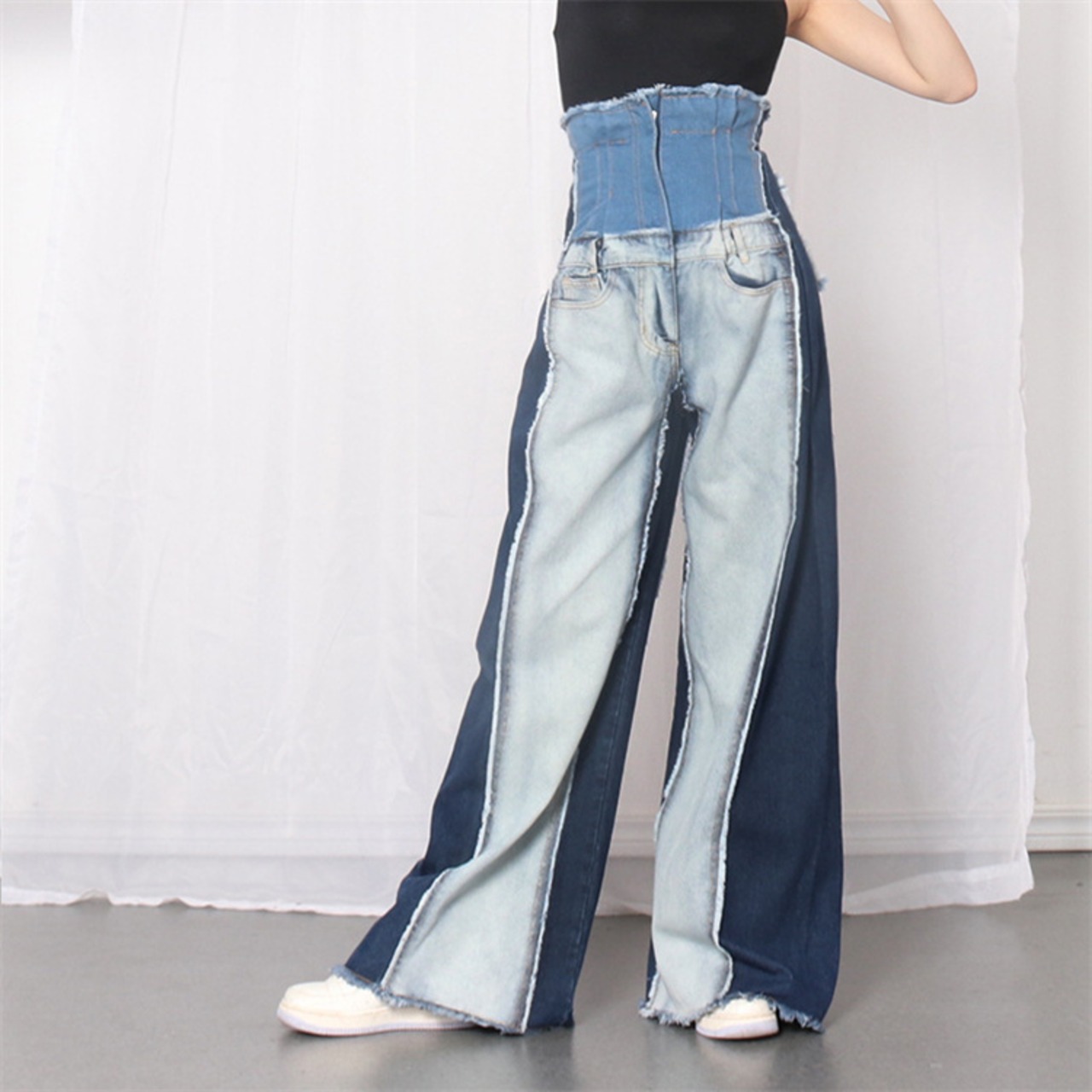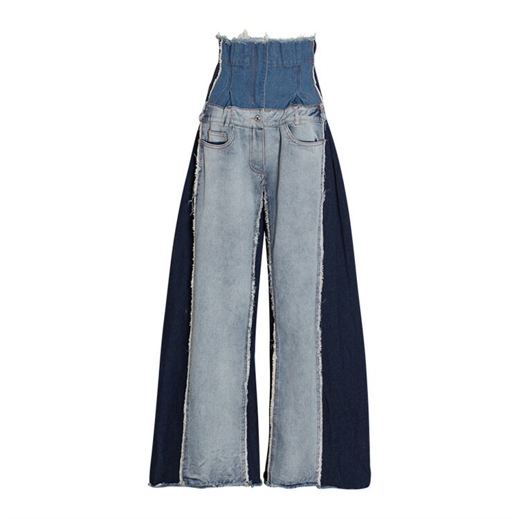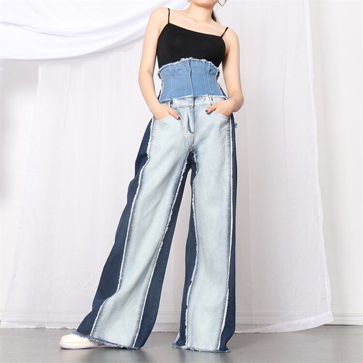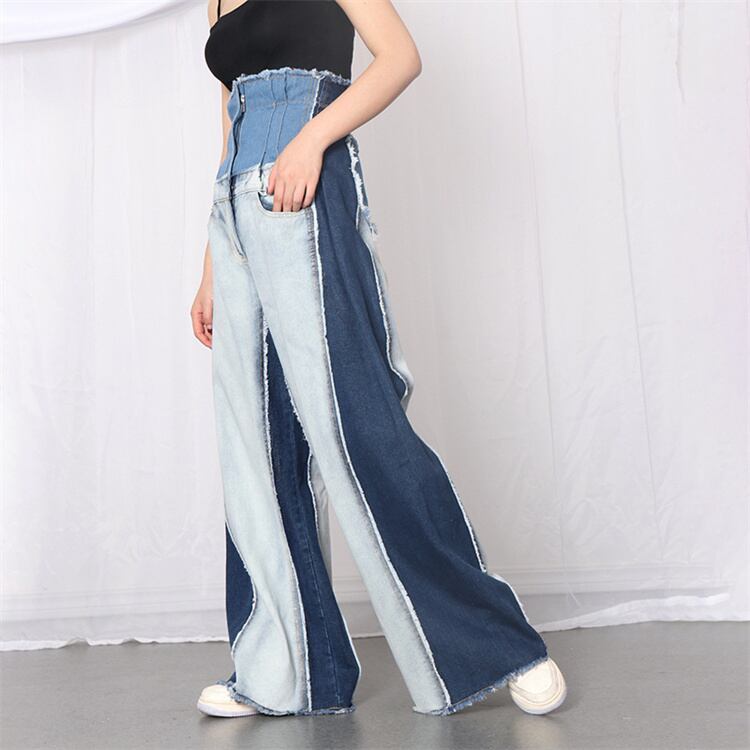 ジーンズ ワイドパンツ ロングパンツ 快適である スリム ハイウエスト 縫付 ゆったりする