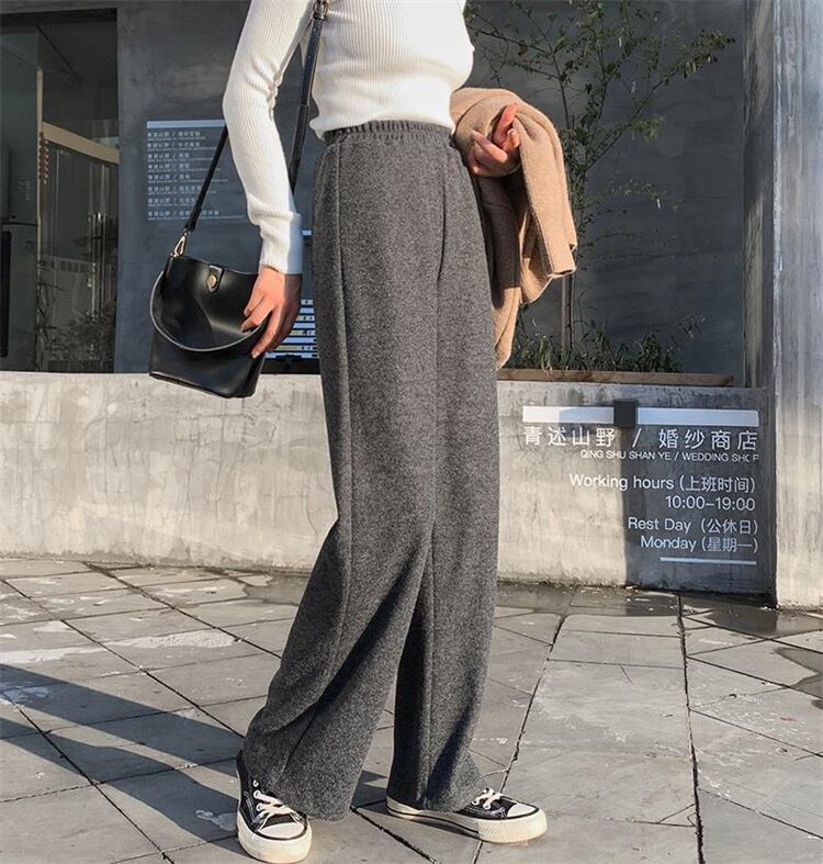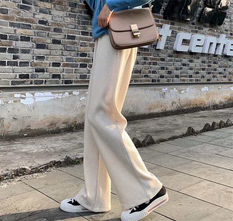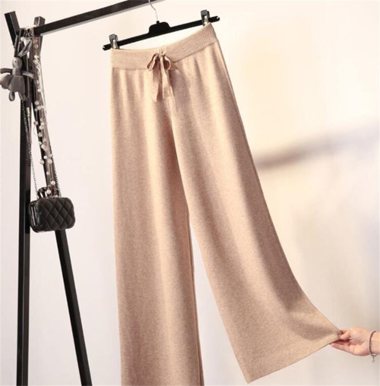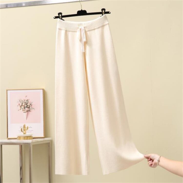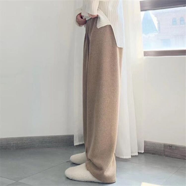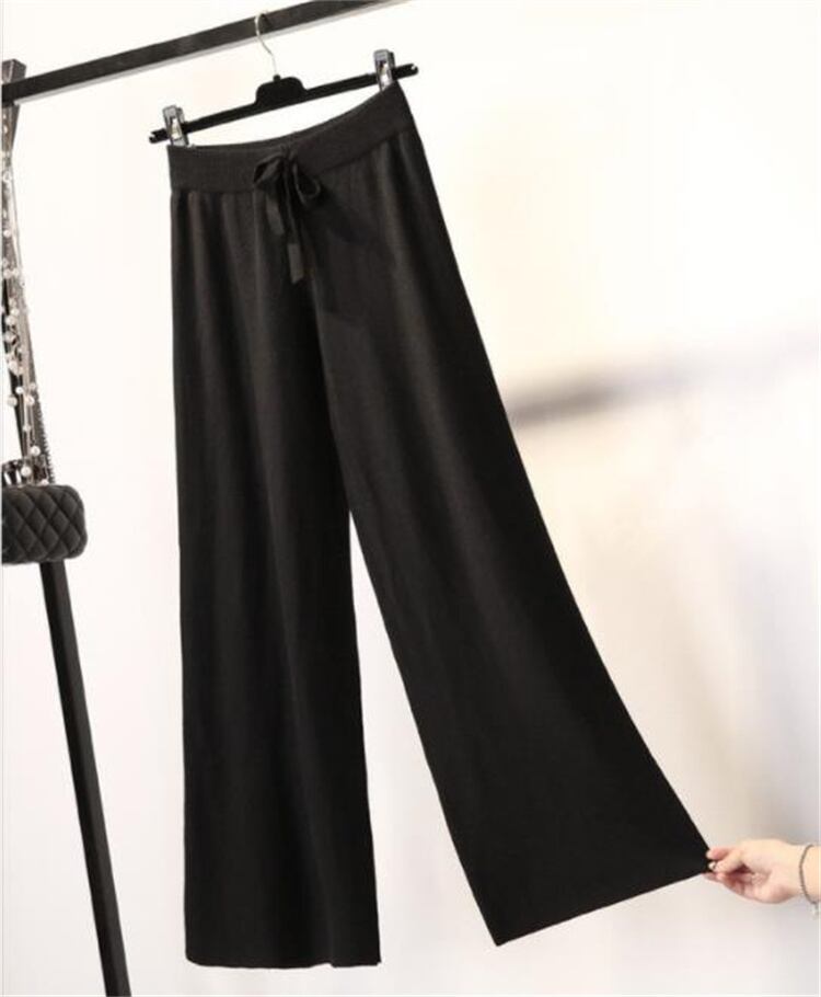 ニット ワイドパンツ ハイウエスト ストレート ゆったりする ロングパンツ 気質