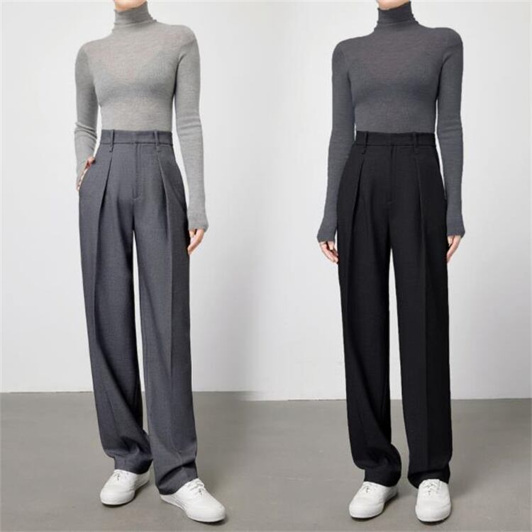 ワイドパンツ ハイウエスト ロングパンツ 気質 スリム スーツパンツ カジュアル ストレートパンツ