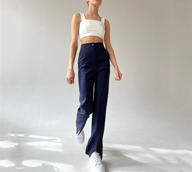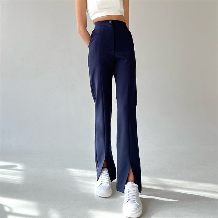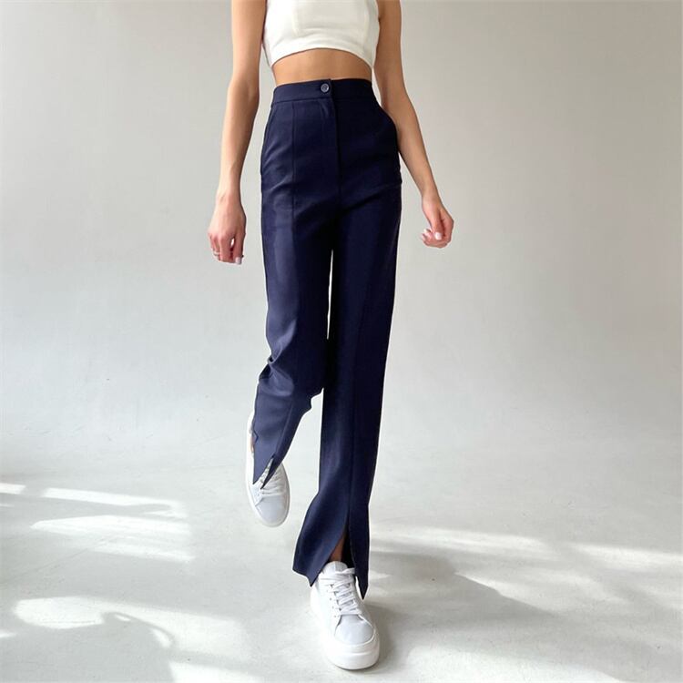 ストレートパンツ ロングパンツ 快適である カジュアルパンツ スプリット デザインセンス