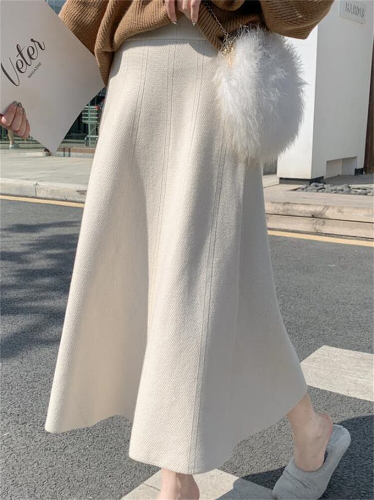 ハイウエスト 春と秋 ニットスカート 秋と冬 新品 厚い 快適である 傘スカート ロングスカート