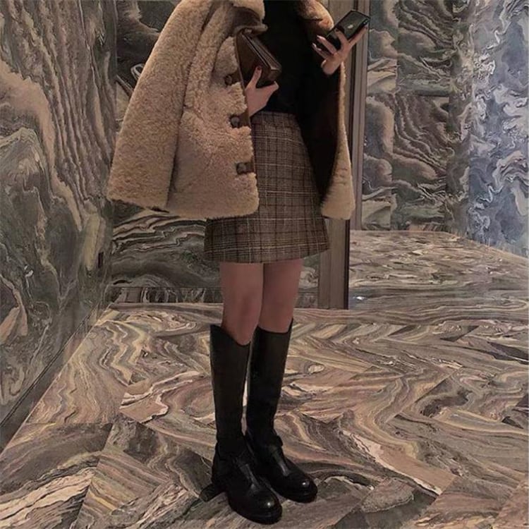 大きいサイズ ハイウエスト タイトスカート 気質 大人気 上品映え 格子縞 Aライン ミニスカート