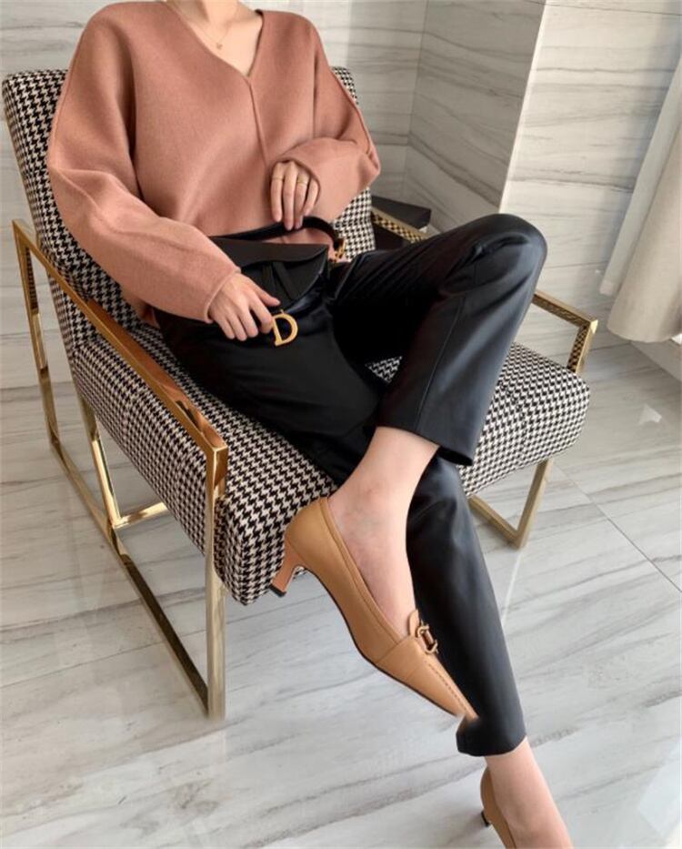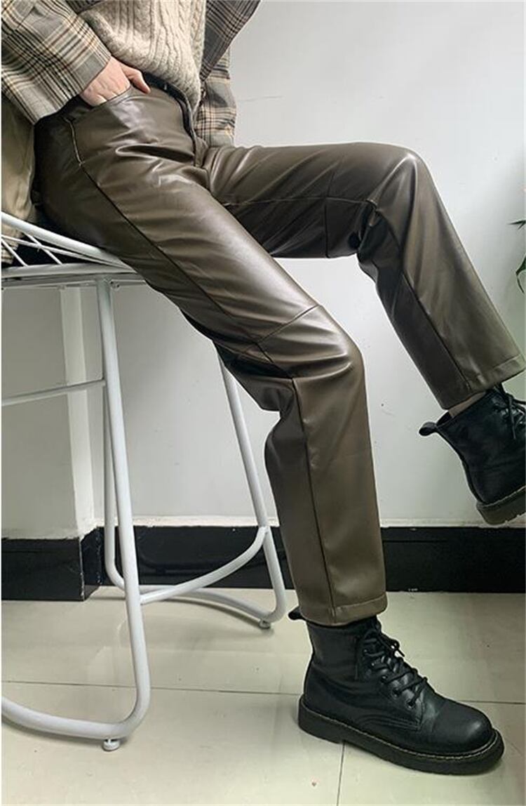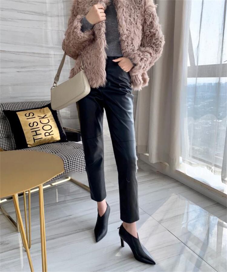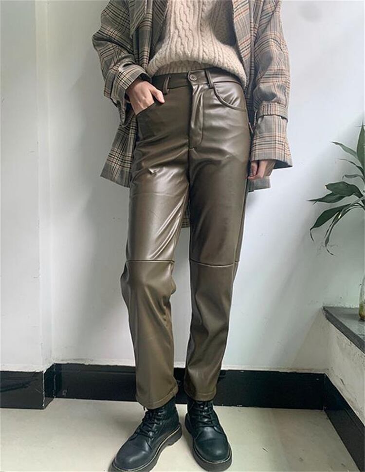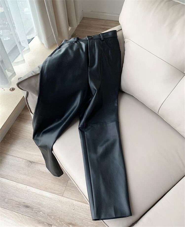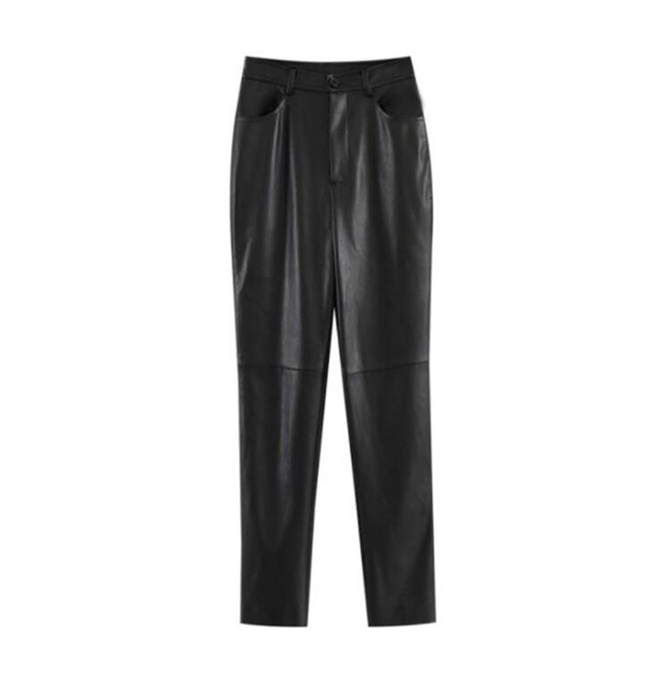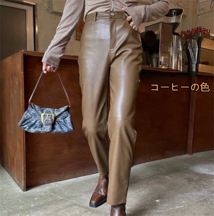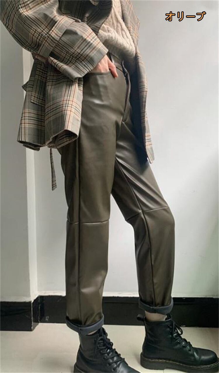 ハイウエスト 薄い 気質 レザーパンツ ファッション PUレザー ロングパンツ レザーパンツ 九分丈パンツ