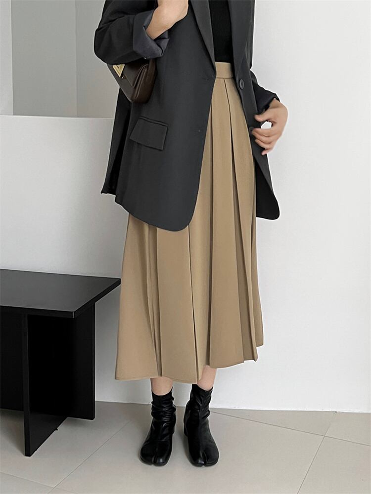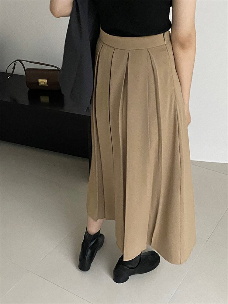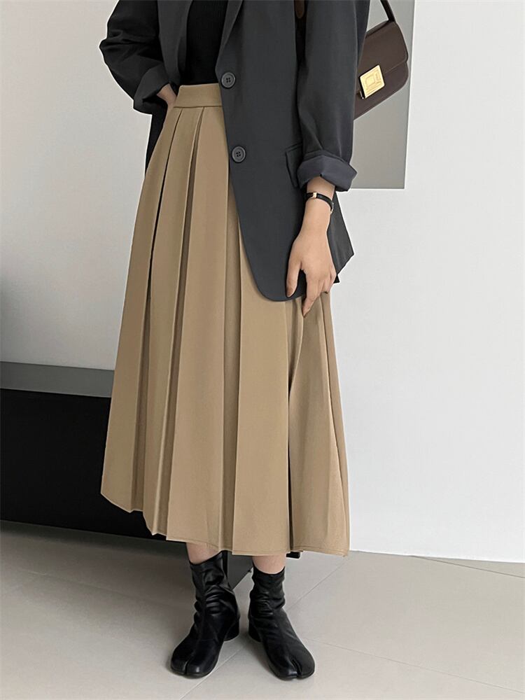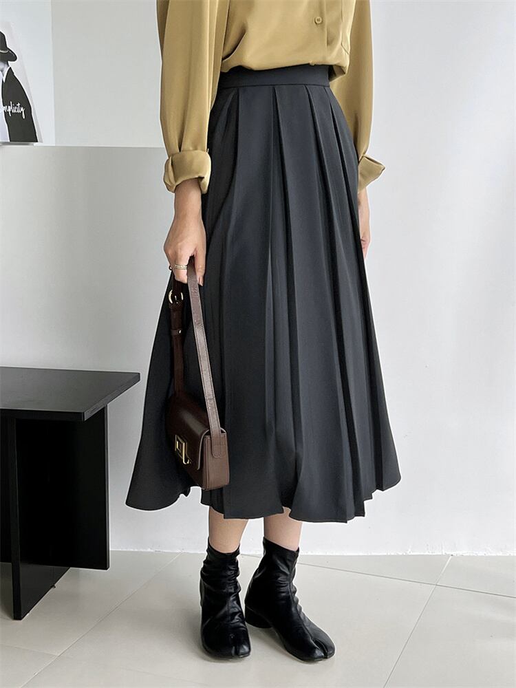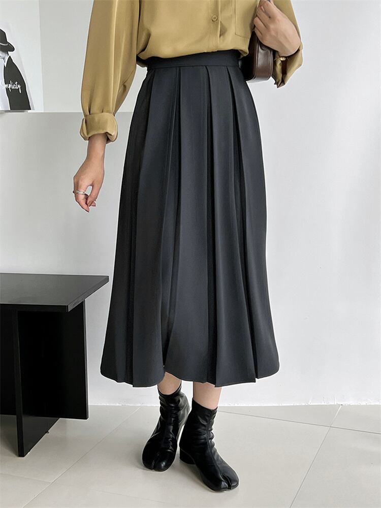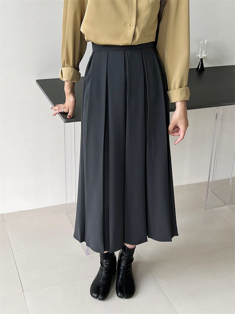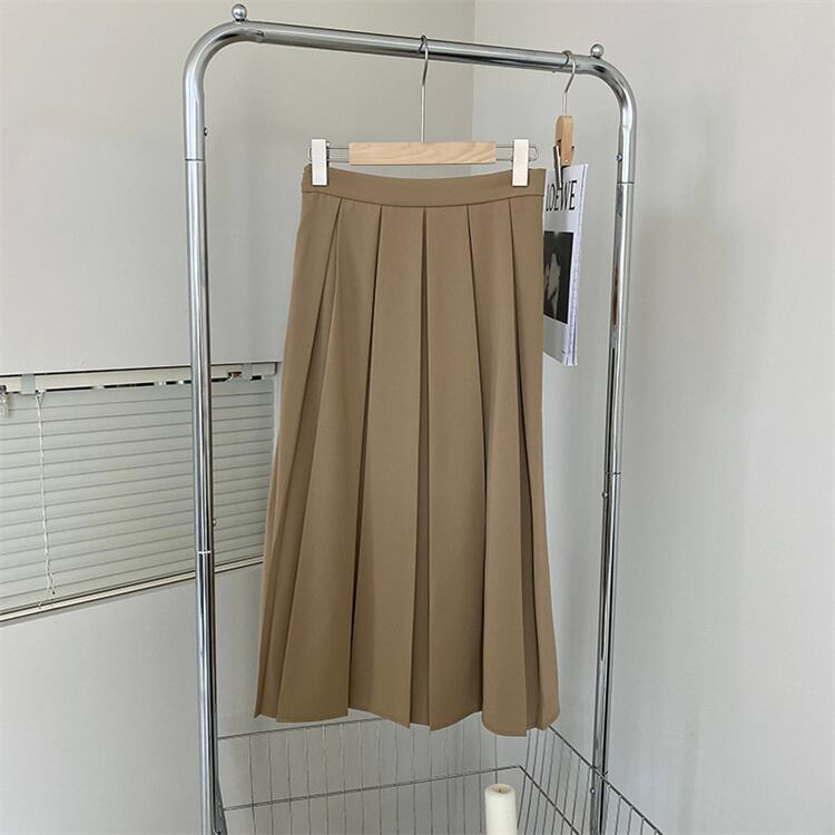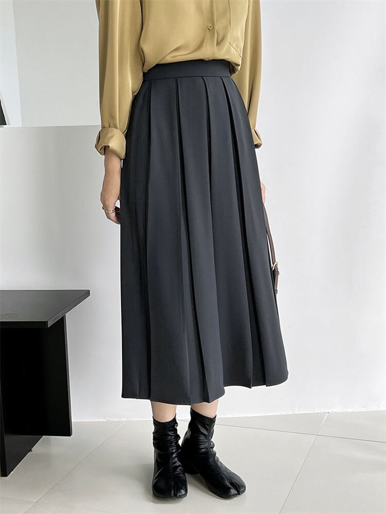 ピュアカラー ハイウエスト ロングスカート カジュアル 新品 スリム プリーツスカート 快適である