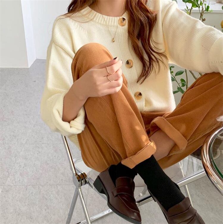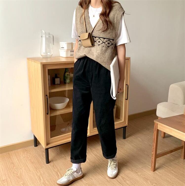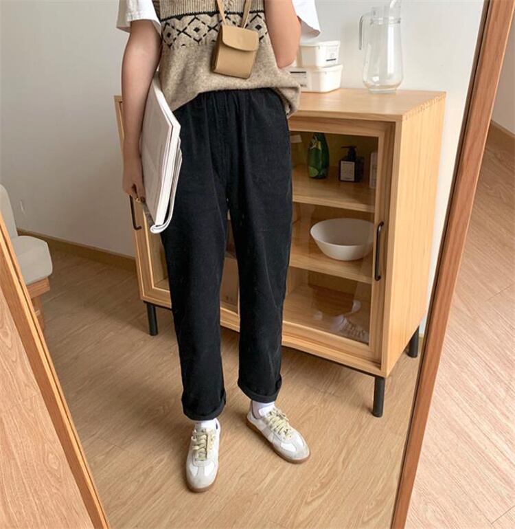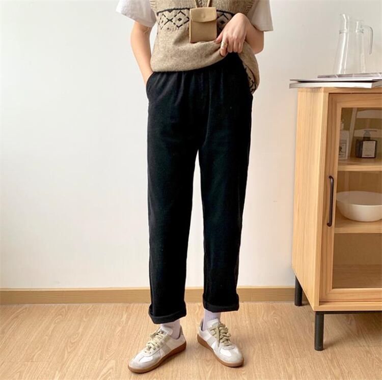 カレッジ風 秋 怠惰な風 レトロ スリム 洋風 ゆったりする 薄手 ロングパンツ コーデュロイ
