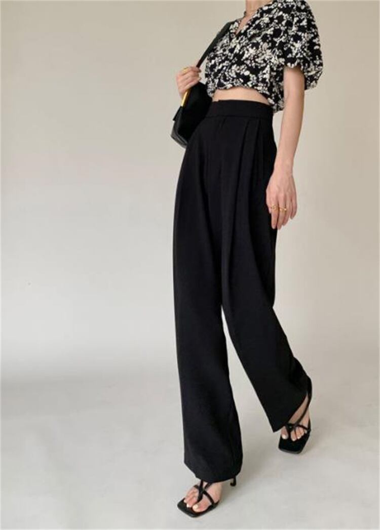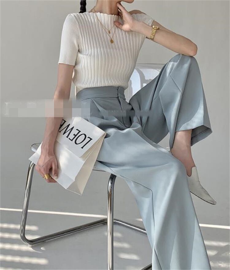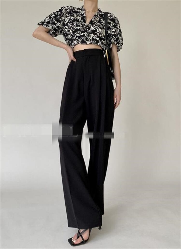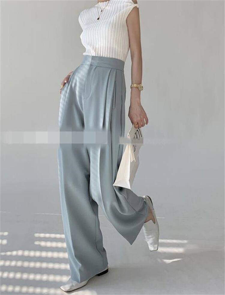 ワイドパンツ ハイウエスト スリム ロングパンツ ピュアカラー ストレート ゆったりする ドレープ