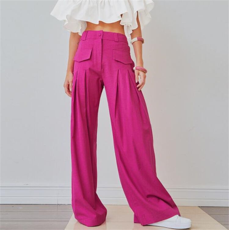 ワイドパンツ 綿麻 ゆったりする エレガント 肌にやさしい ピュアカラー カジュアル ハイウエスト