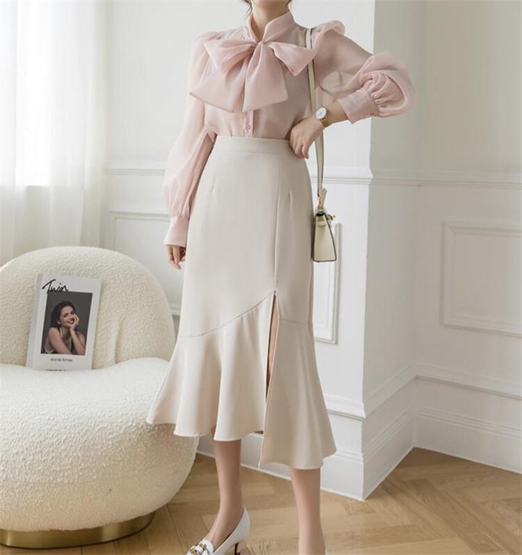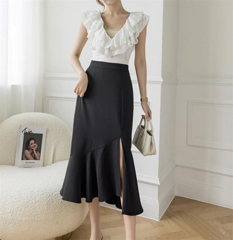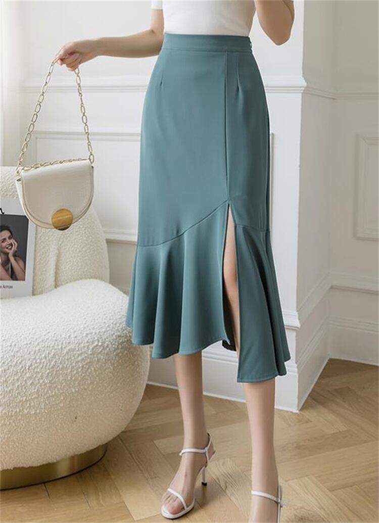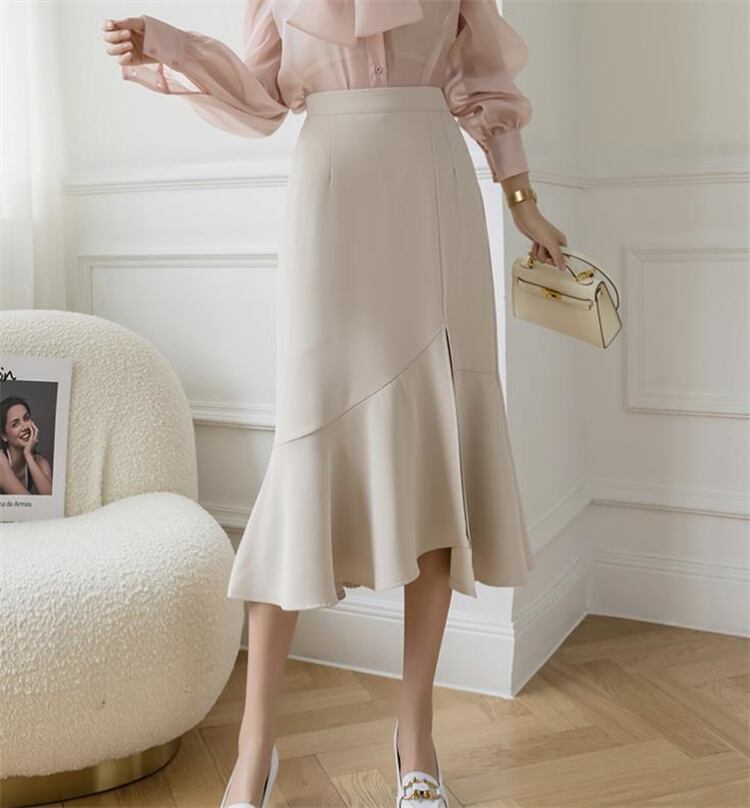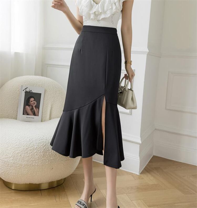 スリム 新品 ハイウエスト フリル ロングスカート フィッシュテールスカート 快適である スプリット