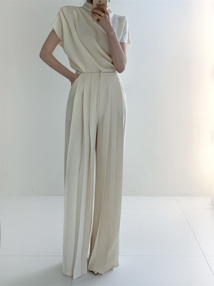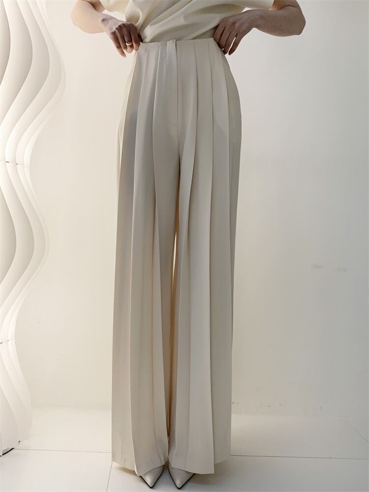 シンプル エレガント ダイアゴナル ハイウエスト カジュアルパンツ ロングパンツ