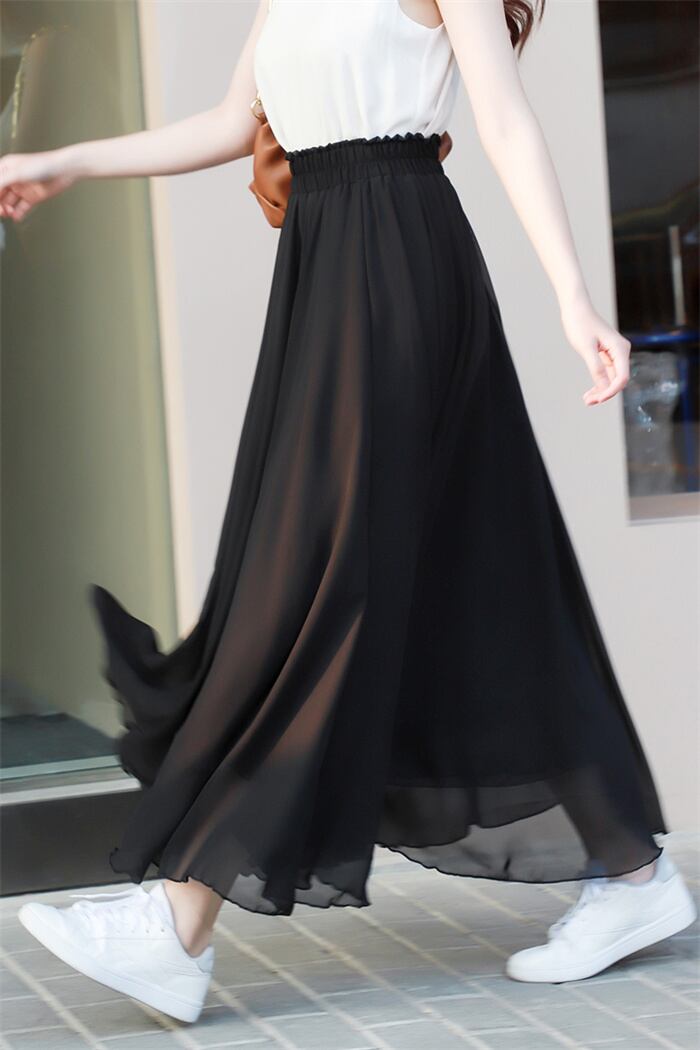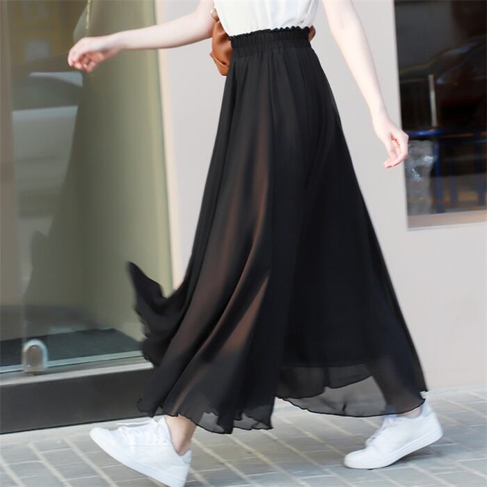店長推薦シフォン/スカート/ブラック/スカート/女性/夏/ハイウエスト/スカート/ロングスカート