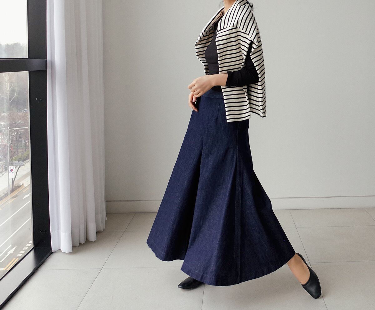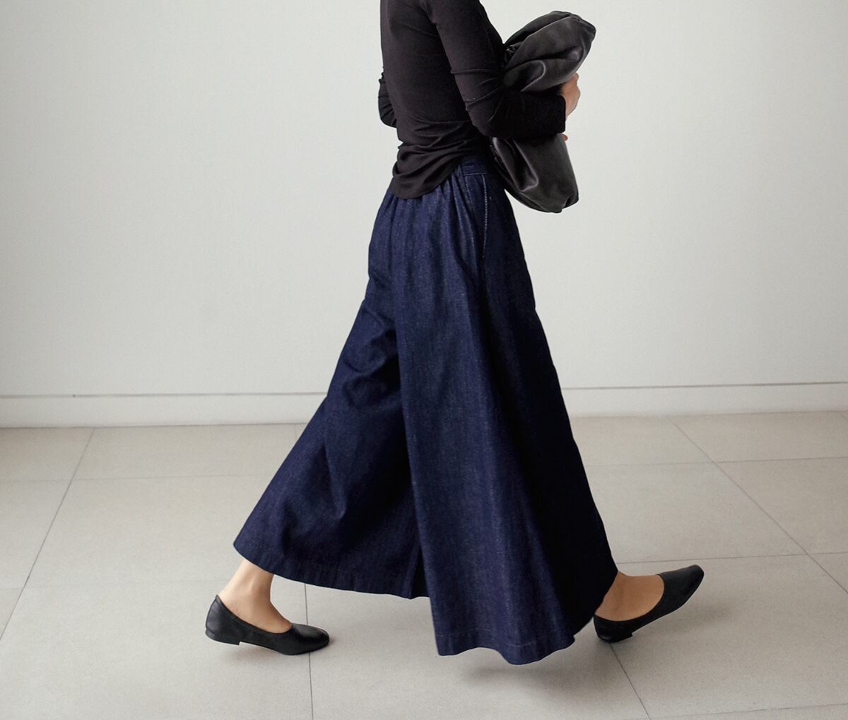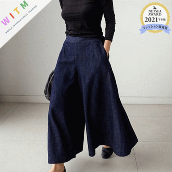 ワイドスタイルにもぴったりややロング丈なので、気になる体型を綺麗にカバーしてくれるワイドパンツ。