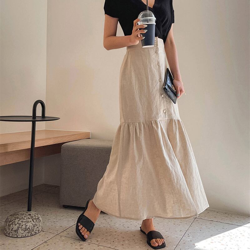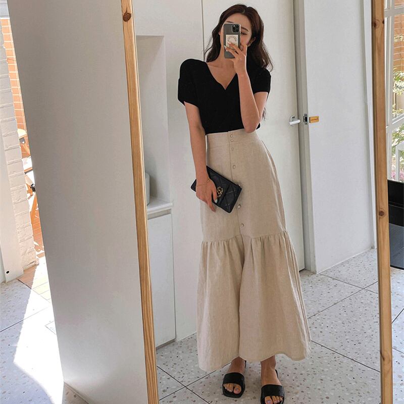 大人カジュアルに着るロング丈スカート。