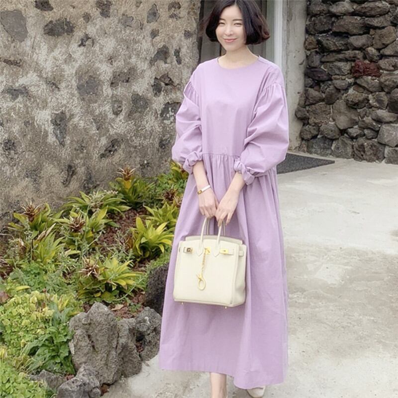 大人カジュアルに着るロング丈ワンピース。