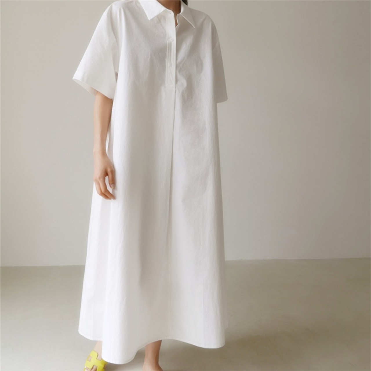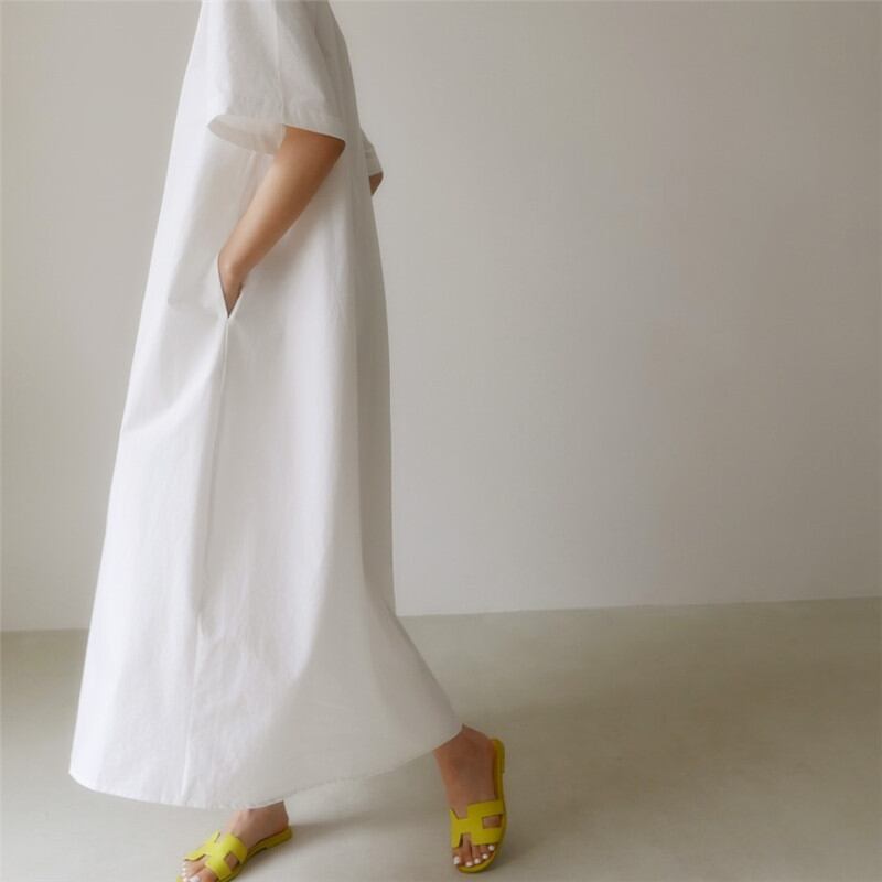 大人カジュアルに着るマキシ丈ワンピース。