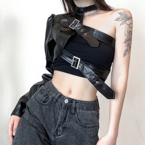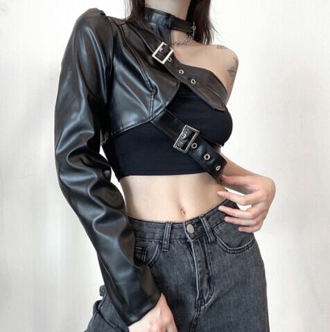 春秋 レディース トップス ベスト PU アウター ショート ダンス衣装