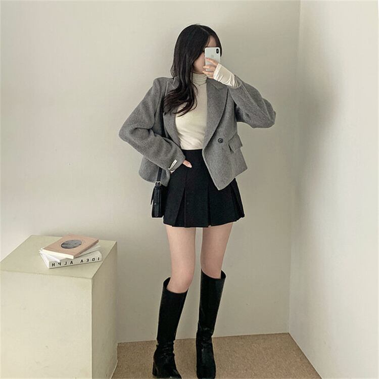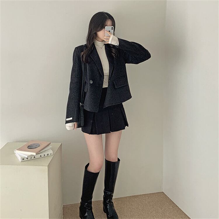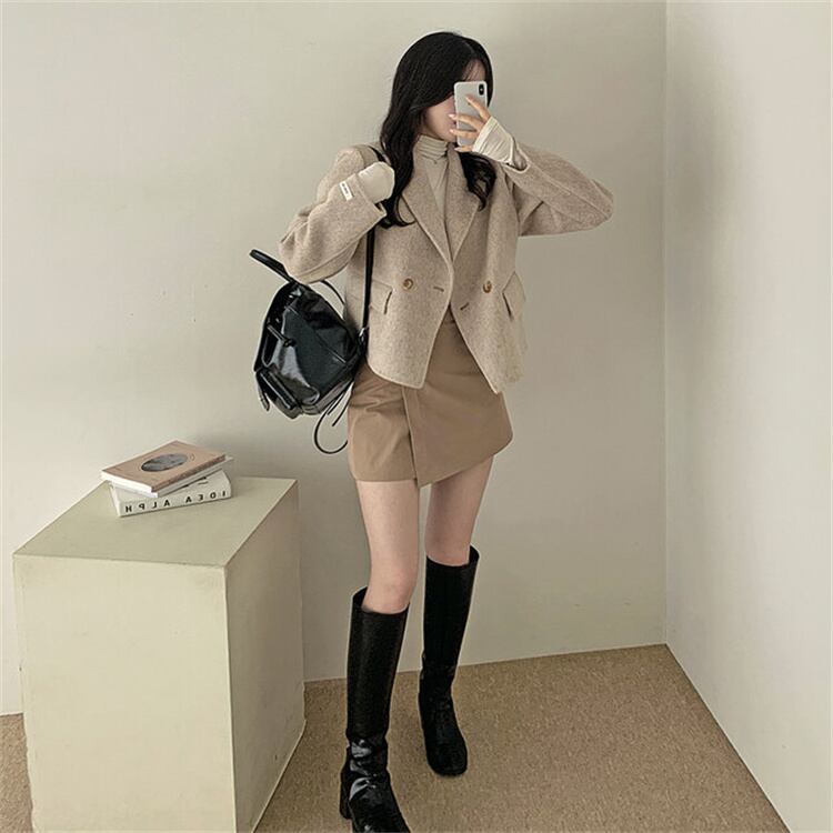 2025冬季 ダブルボタン ウールジャケット オフィス着用 ロングスリーブ 上品感